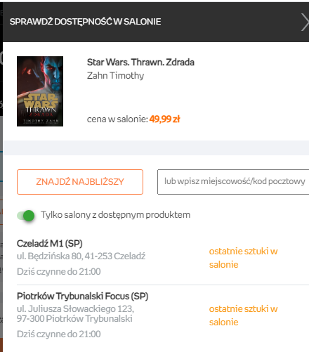 Na allegro masz sporo ofert. Jednak cena ze sporym przebiciem, ale to jedyna opcja teraz. Ja dziś kupiłem całą nową trylogię Thrawna, wcześniej dokupiłem Ahsokę w ebooku i teraz już mam pre order na dwa pierwsze tytuły z Olesiejuka.