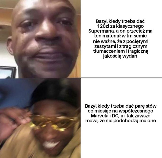 Bazyl ty się słyszysz? Nazywasz błędną polityką to, że Egmont wydaje całe historie, od A do Z. czyli coś co jest całkowicie normalne - i ja nie rozumiem tego twojego gadania o TM Semic jakby to było największe złoto świata - obrzydliwy papier, słabe tłumaczenia, pocięte zeszyty losowo - to ma być wzór i coś co powoduje, że dany komiks u nas ma się nie ukazać? Jesteś śmieszny.
