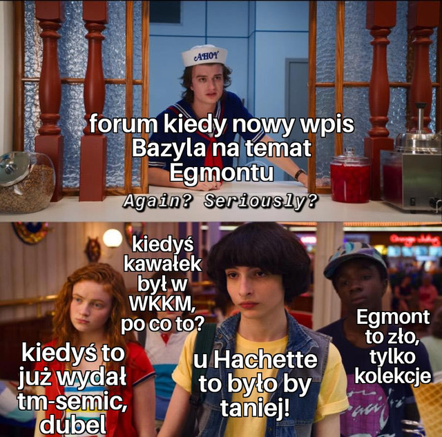 Wydają połowę serii, to jest git, ale jak Egmont chce wydać coś od początku do końca, to jest bee, bo Ty masz kilka zeszytów od aszet i teraz wszystko muszą wydawać tak, jak Tobie pasuje. Pretensję do garbatego.