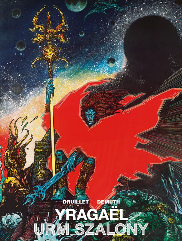 Philippe Druillett jeden z tuzów oryginalnej hurlantowej fali nie dorobił się do tej pory własnego tematu. czas to zmienić. Dru-Dru nie jest moim ulubionym autorem, choć odkąd zobaczyłem po raz pierwszy jego prace w Fantastyce, to wiedziałem, że kiedyś w końcu muszę dorwać to cudo i spróbować przeczytać. dorwałem po francusku, chciałem się na tym nauczyć języka, próbowałem, próbowałem po raz kolejny, i jeszcze, i stwierdziłem, że albo jego teksty są tak bardzo paździerzowe, albo ja nie nadaję się do tego języka. to drugie to na pewno, ale po latach - i po przeczytaniu oficjalnych translacji - zauważam, że to pierwsze chyba raczej też. wiadomo, może być że nie ogarniam. wiadomo, trzeba bardziej wchłaniać i wciągać, a nie czytać i "logicznie" składać. no niby wiadomo, ale jakoś do tej pory nie udało mi się Dru naturalnie zasyminlować. wciąż czuję smak paździerza. jedynym wyjątkiem jest Vuzz, który wszedł gładziutko bez popity. Genialny komiks, ale brak mu tych spektakularnych niesamowitych niezapomnianych i niedających się pomylić z niczym innym - ikonicznych grafik Druilleta. Najnowszy wydany u nas, Yragaël, to właśnie ta pozycja, w której są te wszystkie kultowe obrazki, którymi oszczędnie nas karmiono w siermiężnym peerelu.