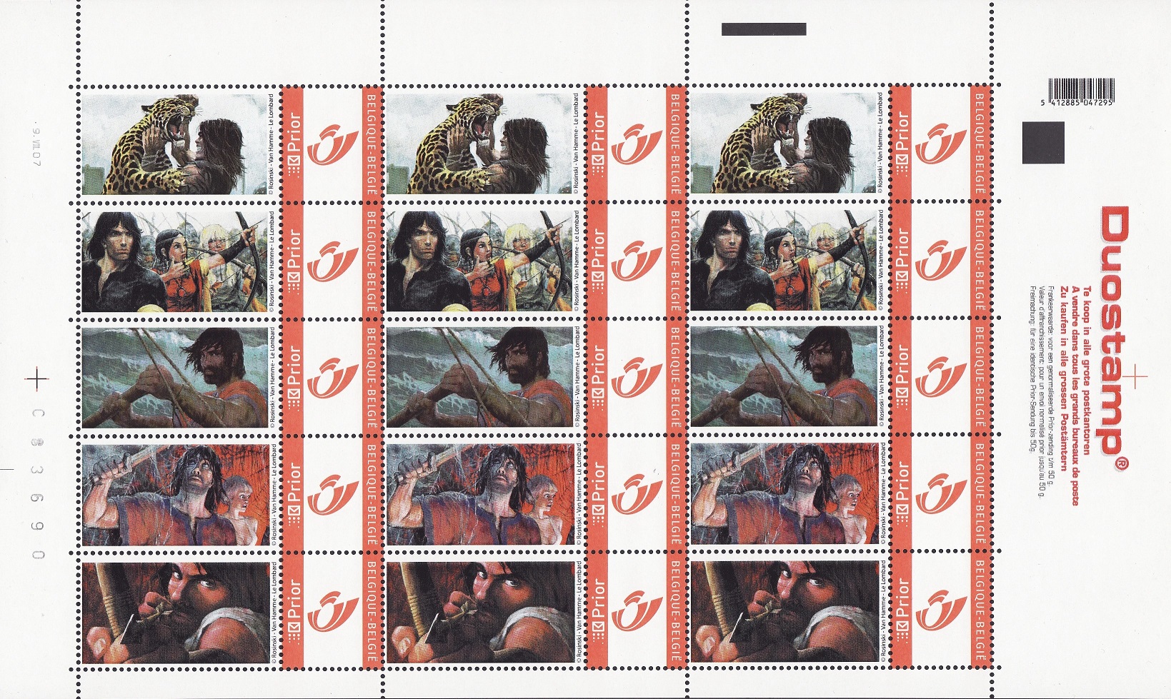 Znaczki belgijskie z Thorgalem 2007 roku, bloczek i zestaw dla filatelistów.