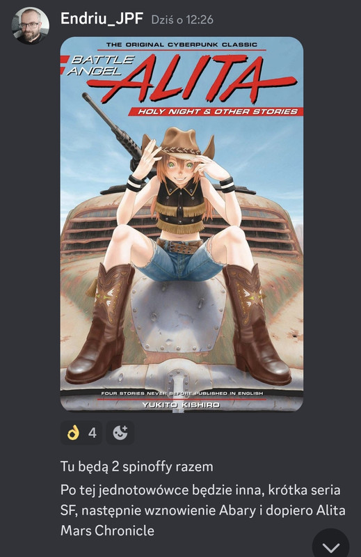JPF na Facebooku podało: "Dodatkowo po tym tomie zanim przejdziemy do ALITA MARS CHRONICLE wydamy (również w tym wielkim formacie):