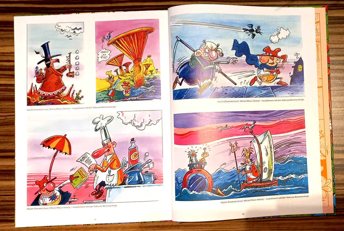 Wpadł taki pakiecik, ale do weekendu musi wytrzymać. Z ciekawości przejrzałem te powiększone wydania i jak miałem wątpliwości, tak już nie mam. Świetnie się prezentują takie duże kadry, zwłaszcza przy tej ilości szczegółów na wielu z nich. Przyjemnie się je ogląda w takim formacie. Nie wszystko z tego czytałem w dawnych czasach. Jako ciekawostkę wrzucę, że swego czasu wydawnictwo Omnibus, a dokładnie w 1989 (fajnie to brzmi :) wydało Skąd się bierze woda sodowa w jednym komiksie razem z Profesorką, Nerwosolką, tylko jakiś taki cienki był ten komiks. Dopiero później się dowiedziałem, że Nerwosolki to była tylko część pierwsza, no ale takie czasy i takie wydanie.
