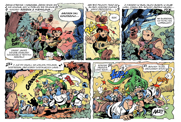 Serię Kajko i Kokosz bardzo sobie cenię. Komiksy te czytał również mój ś.p tata w młodości i to on zaszczepił we mnie miłość do komiksów(można rzec, że był on pierwszym w Polsce geekiem  ;D). W swojej kolekcji mam wszystkie albumy z serii. Jeżeli chodzi o humor to jest on wręcz podyktowany pod moją opinię. Grafika to z kolei niemalże poezja. Prawie, że codziennie otwieram tom taki jak np. "Cudowny Lek", aby porozkoszować się pięknym widokiem jezior(zwłaszcza detale fal), czy też krajobrazów górskich. Jedynym minusem rysunku jest to, że postaci są zupełnie nieproporcjonalnie zbudowane(krótkie nogi, duże tułowia i wielkie stopy). Pozdrawiam wszystkich fanów serii, mam nadzieję że takich tu jeszcze spotkam :)