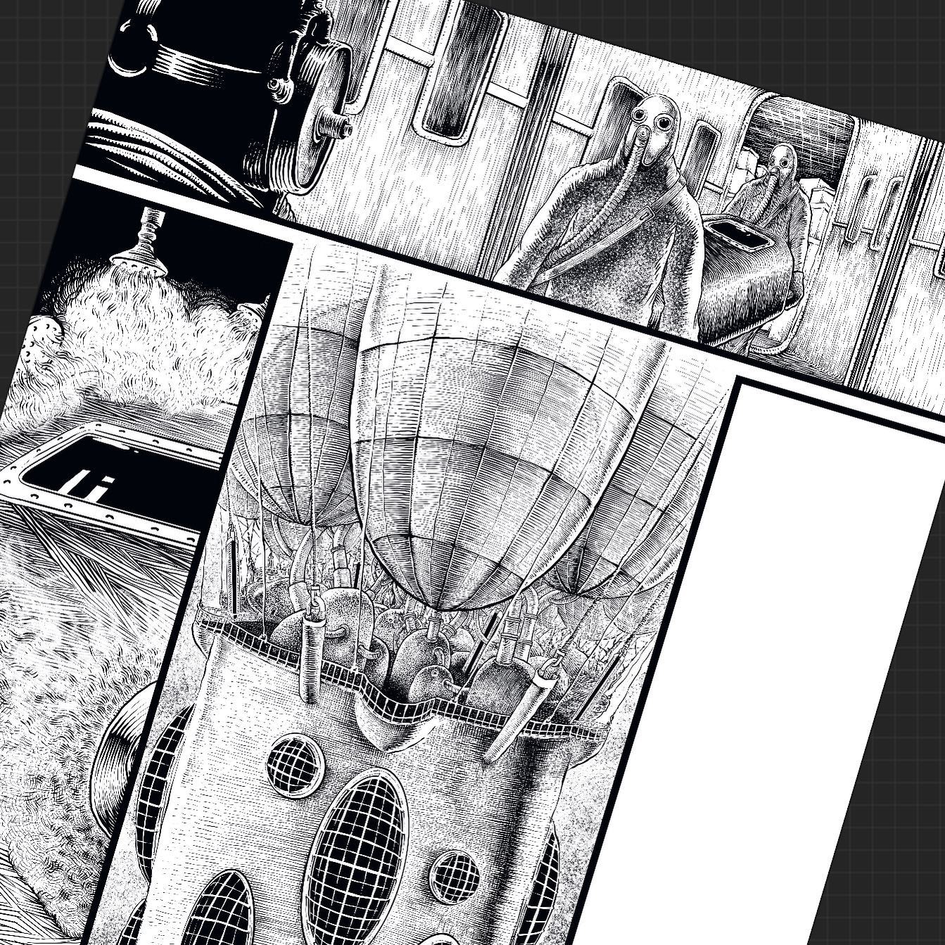 Pierwsze to z "Hiato" (taki nano-cyberpunk), drugie to fragment planszy z "Wujka" (chyba im zabrakło papieru i nie wyjdzie w tym roku, a miało być tak pięknie, nawet prezydent RP przyjechał, i cała para w gwizdek  >:( ).