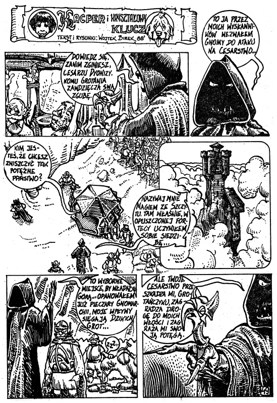 Pierwsza wersja miała tytuł zdaje się "Kacper i kryształowy klucz" (albo kula?) i ukazywała się chyba w "Wiadomościach Skierniewickich" pod koniec lat 80-tych. Rozmawiałem kiedyś ze Sławomirem Zajączkowskim, który czytał to na bieżąco i był fanem tego komiksu. "Komiks i My" mógłby to odświeżyć jak "Cyberoida", ale oczywiście najlepszy byłby samodzielny album.