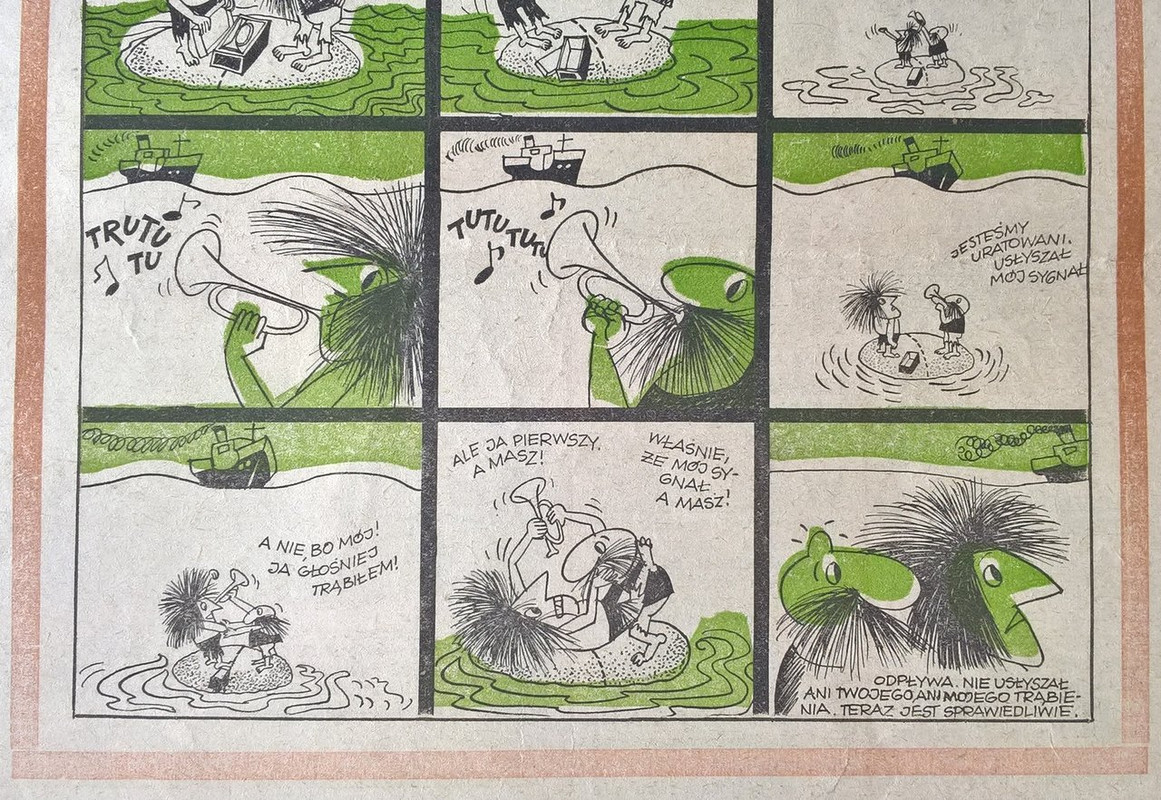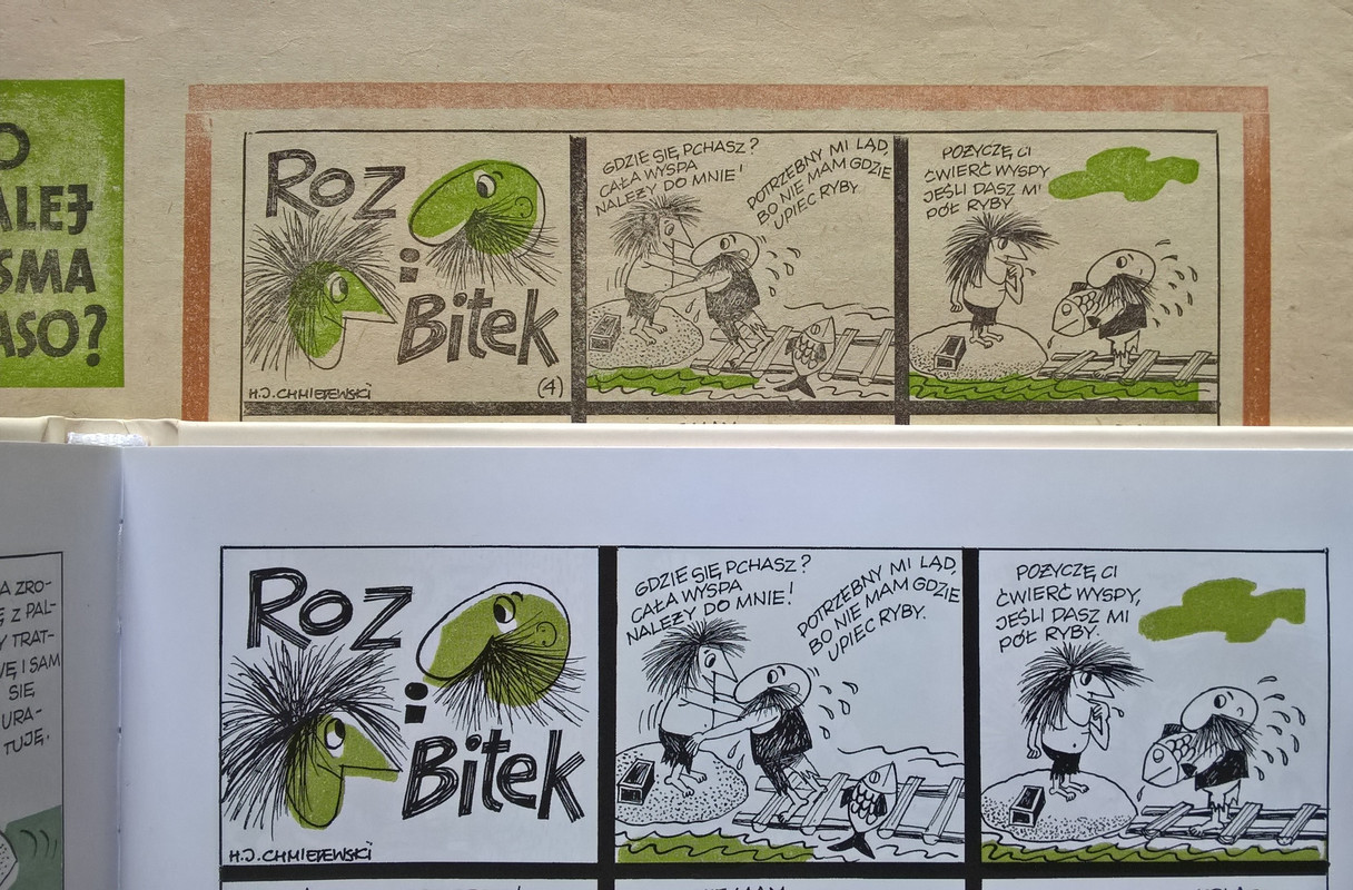 ciekawostka : na zdjęciach wyraźnie widać różnice w przesunięciach plam koloru w zależności od egzemplarza gazety.