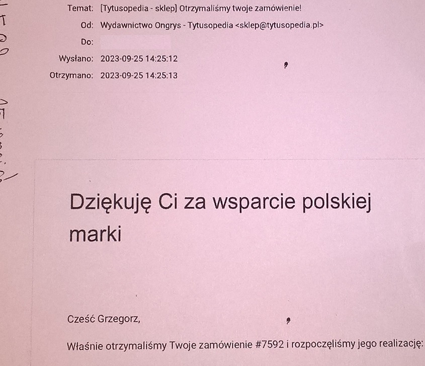 Fajne te "Potwierdzenie otrzymania zamówienia" od Ongrysa.