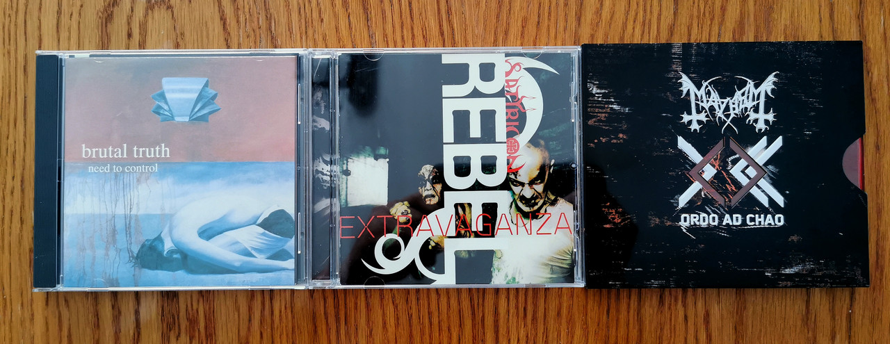 Wracam do szatanów. Przyszły mi płyty z kilku preorderów, niektóre jeszcze z grudnia. Nadrobiłem trochę klasyki, nie wiedziałem, że nie mam w swojej dyskografii Bathory „Blood Fire Death”. Teraz już mam a żeby bylo do kompletu, wziąłem jeszcze „Blood On Ice”. Z klasyki zakupiłem jeszcze Norwegów z Gehenny i ich debiut „First Spell” oraz debiut Rotting Christ „Thy Mighty Contract” tutaj z dodatkową płytą koncertową „Fuck Christ Tour 93”. Na koniec mała zmiana klimatu. Dwunastocalowa epka Mortiis „Blood And Thunder” oraz debiut brazylijskich thrashowców z Violator „Chemical Assault”