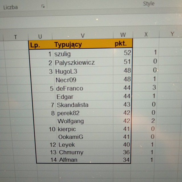 Miałbym może taką propozycję, żeby czołowa czwórka przesyłała swoje typy prywatnie tak, aby wykluczyć jakieś strategie (że pierwszy typuję tak jak drugi albo drugi będzie zmieniał, żeby się od pierwszego odróżnić itp.). Co sądzicie?