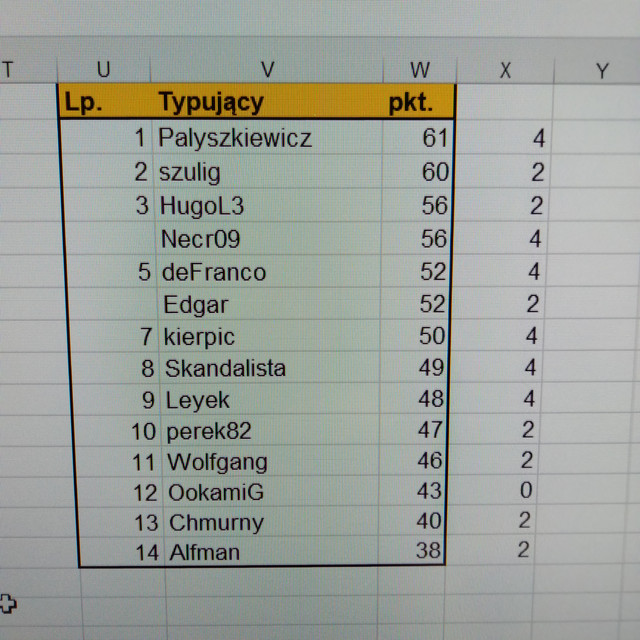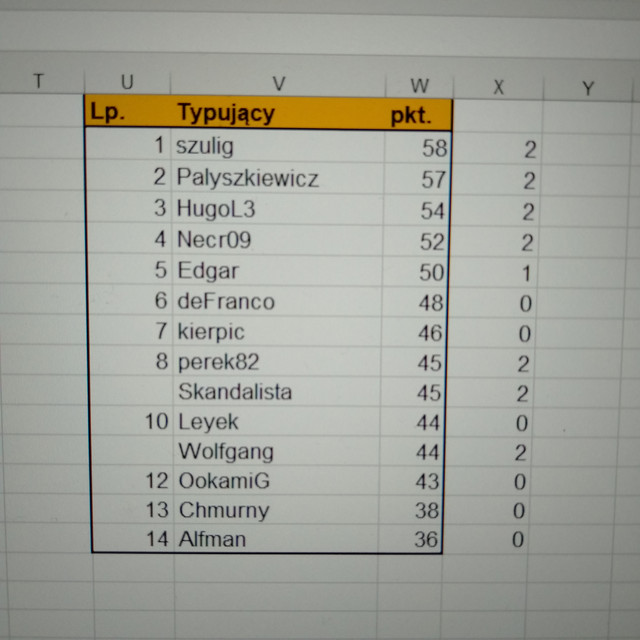 przeglądam te tabele i zastanawiam się co się stało z perkiem82. Po drugiej kolejce