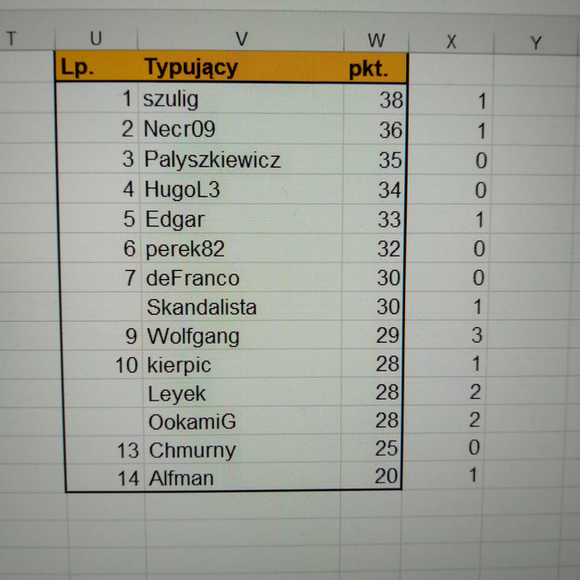 Wytypowany wynik porównujemy z wynikiem po dogrywce (o ile jest).