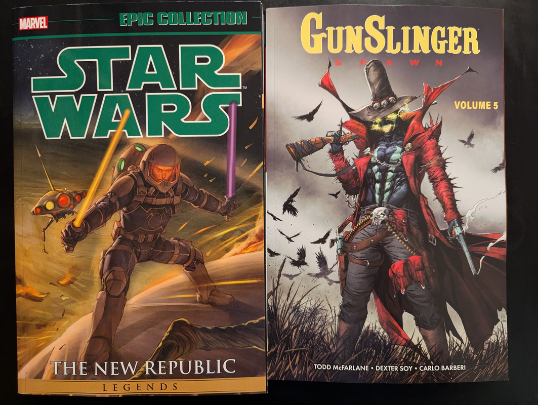 Calosc to - siedem zeszytow z uniwersum Spawna (plus warianty), cztery Star Wars od Marvela , piec zeszytow Star Wars od Dark Horse (plus warianty) i cztery TPB z czego jednen to manga.