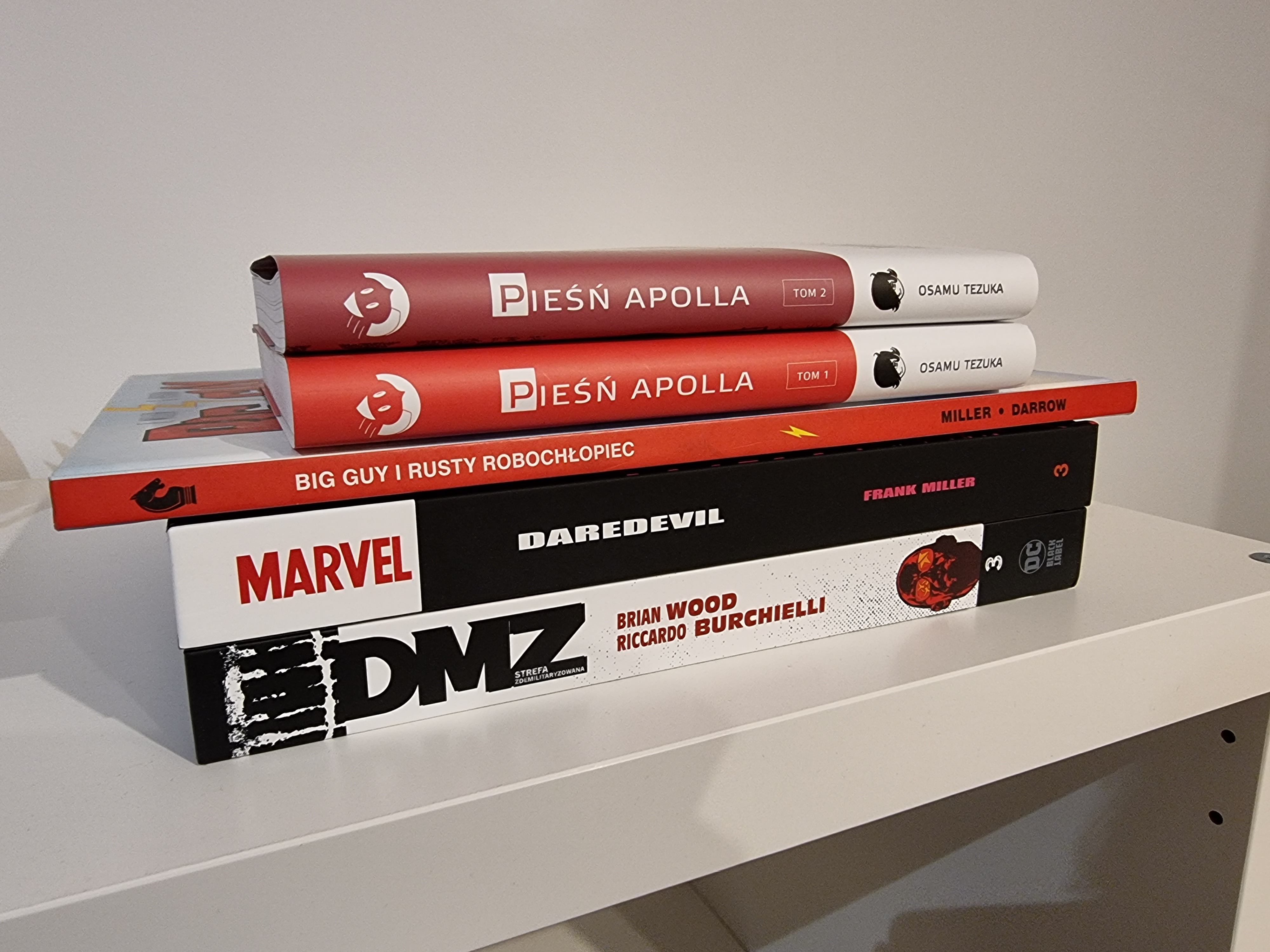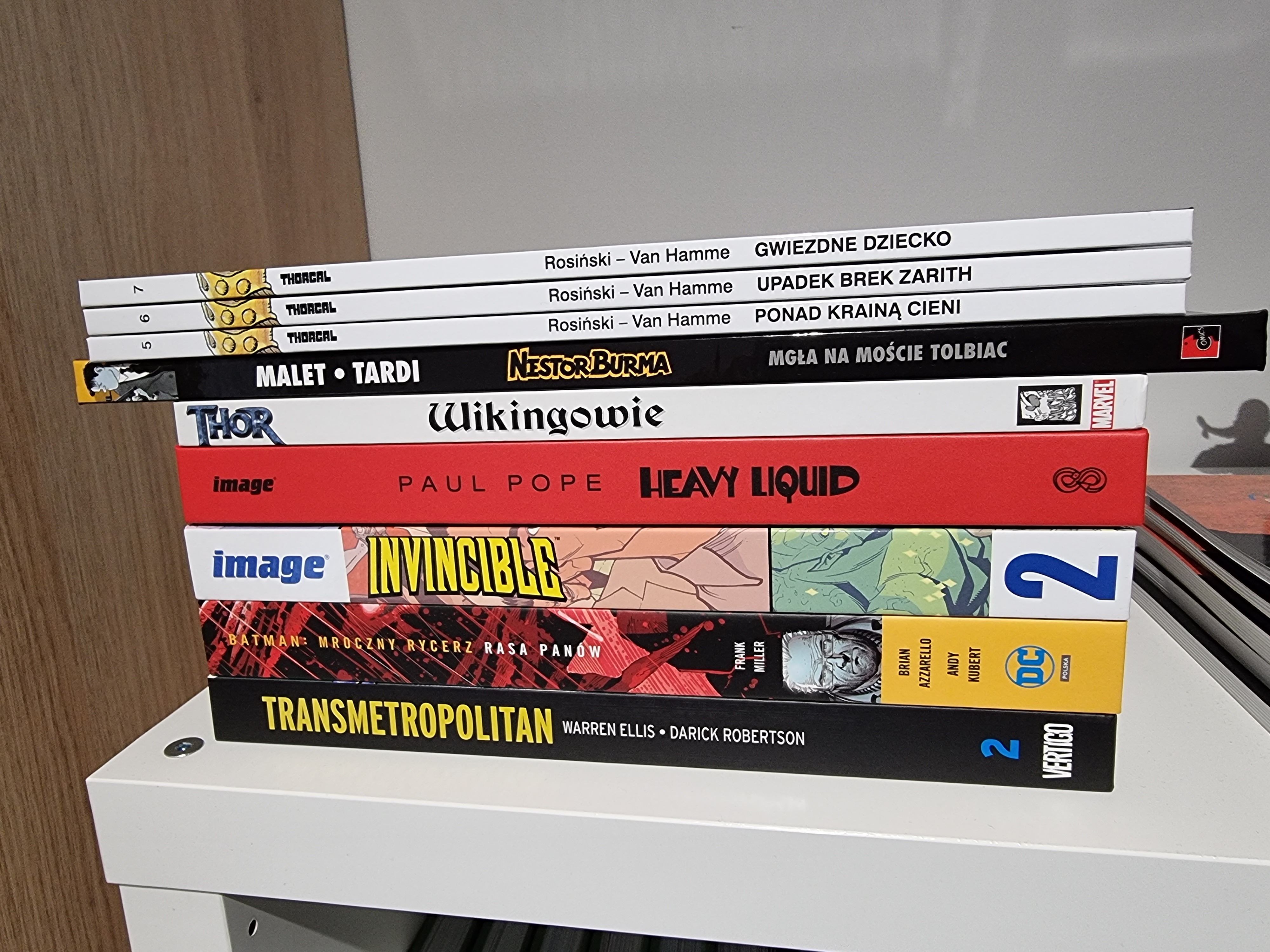 W tym miesiącu mocne nazwiska - Morrison, Miller, Ennis, Moore - uzupełnione o dwie nowsze rzeczy z Black Label. Większość zestawu z Taniej Książki, gdzie z ostatnim kodem rabatowym wychodziło jakieś 40% obniżki.