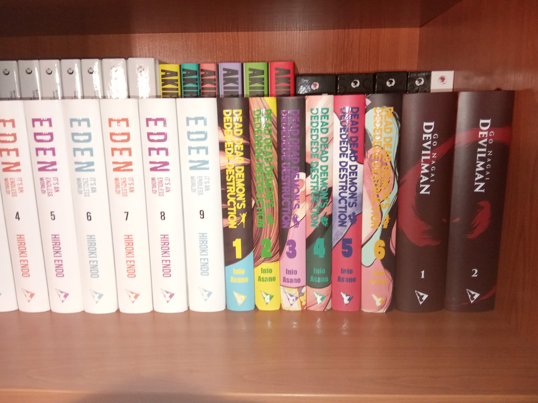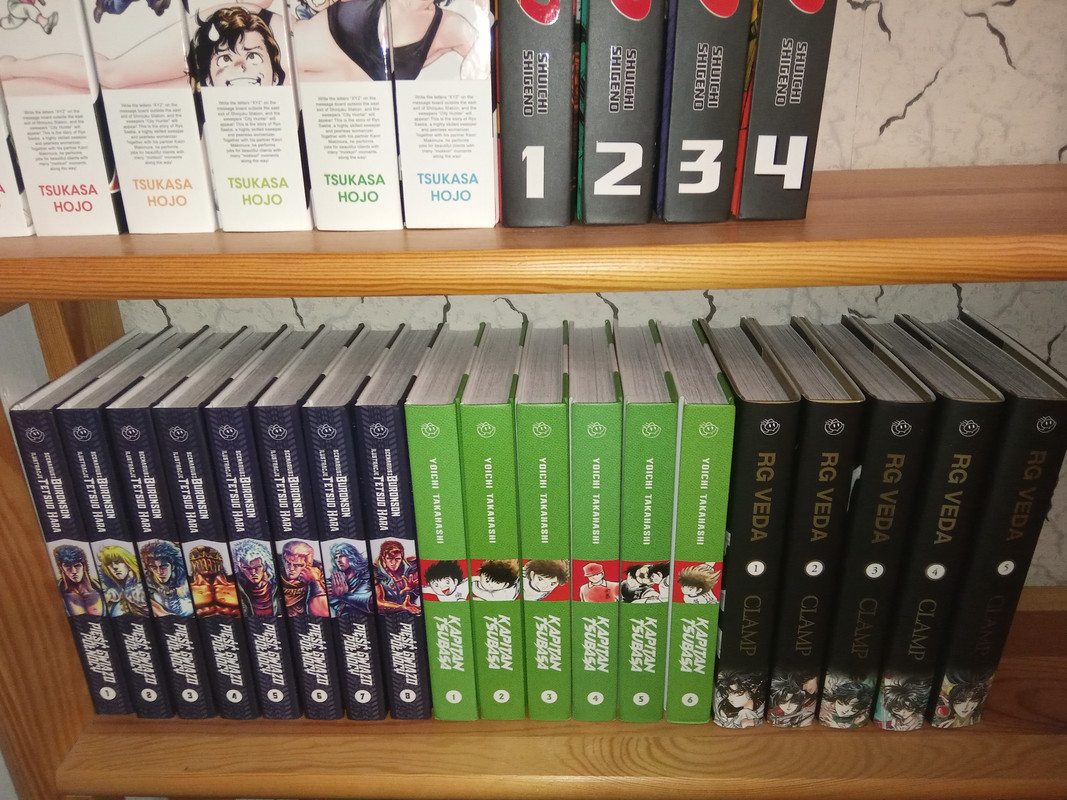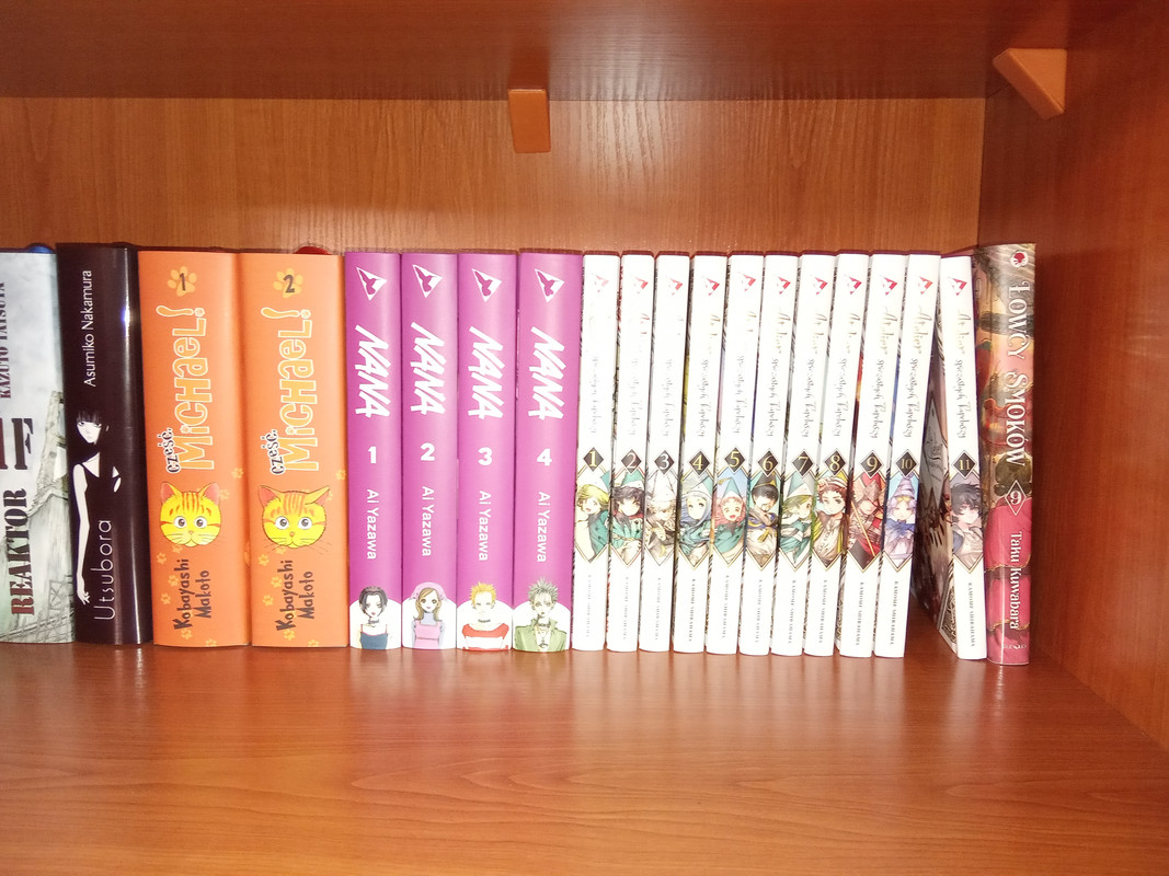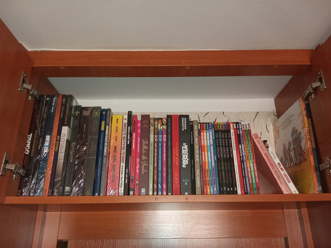 Część mang wylądowała w szafie i chociaż miejsce jeszcze jest, to skończone serie zacząłem już układać w dwóch rzędach.