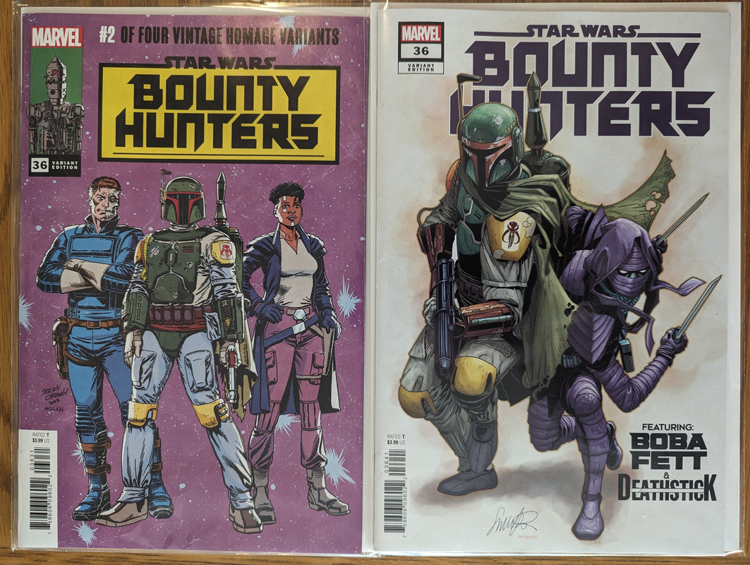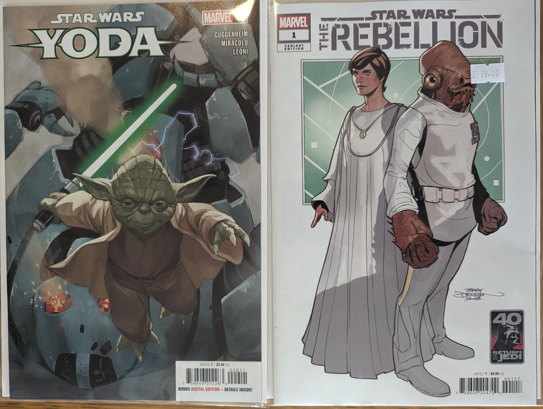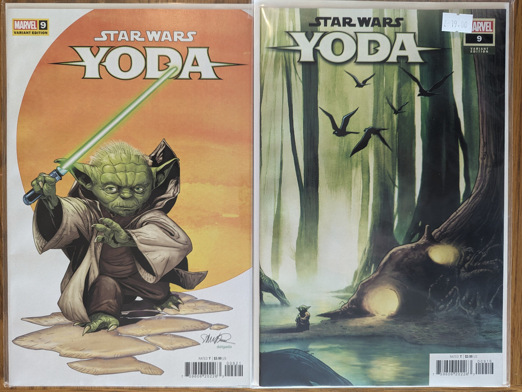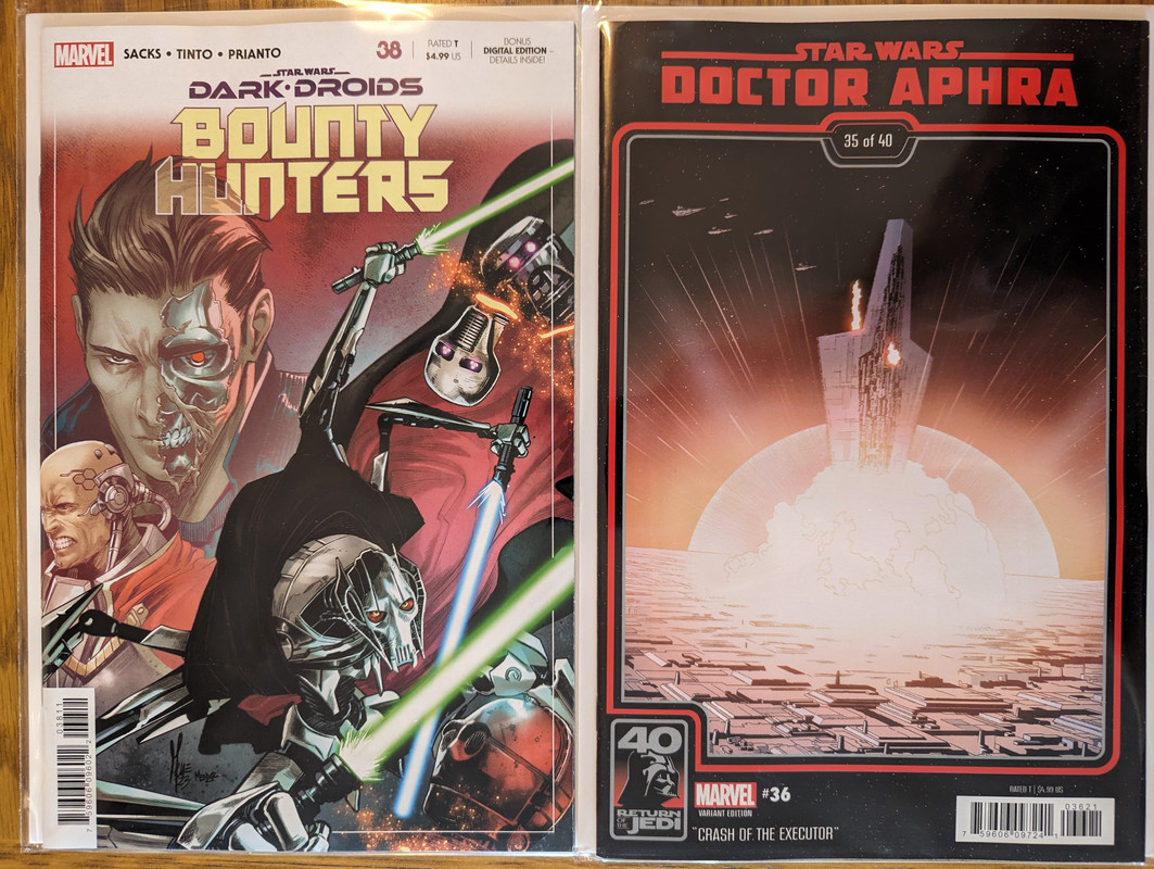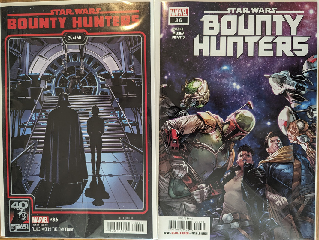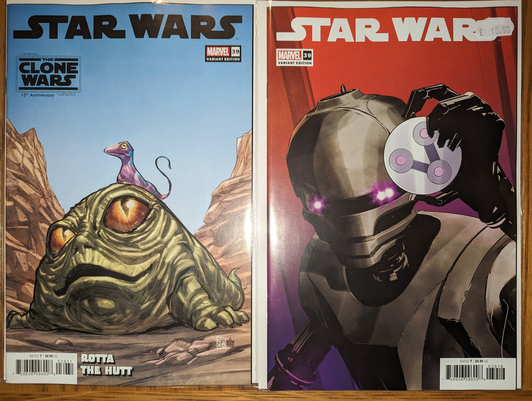 W najblizszych miesiacach bedzie jeszcze wiecej tych virgin wariantow bo jesli nie daja ich jako 1:100 retailer incentive (jak we wszystkich one shotach ROTJ) to sklepy wrzucaja je jako swoje wlasne warianty - Mandalorian, Obi-Wan czy Aphra, ktora bedzie miala 3 virginy sklepowe w dwoch numerach (36 i 37)