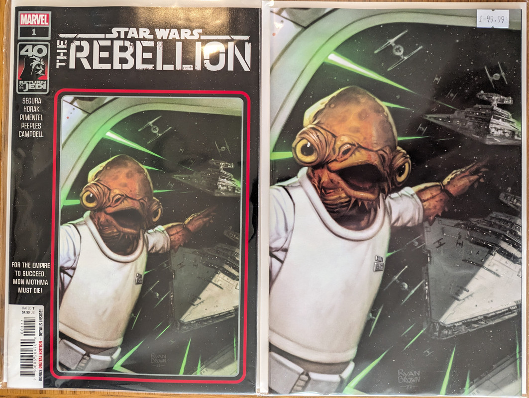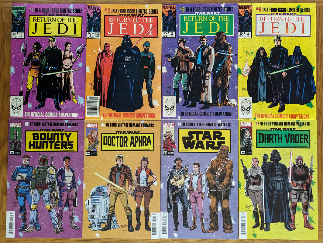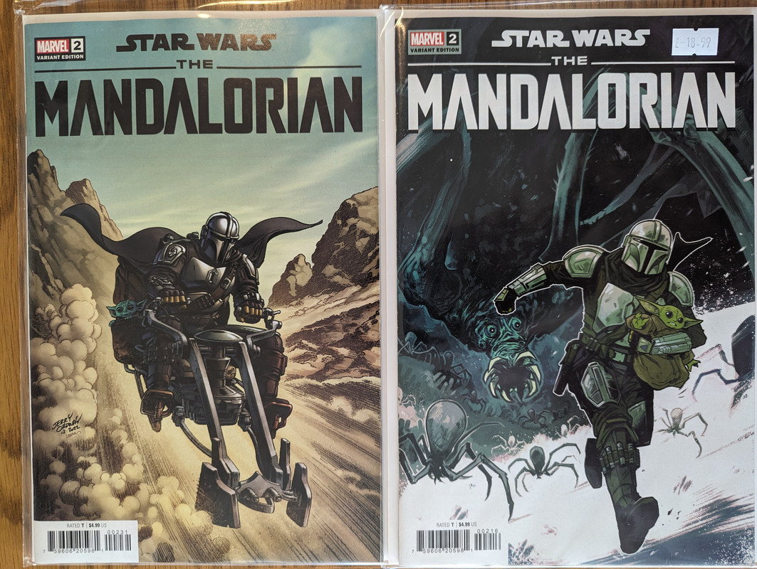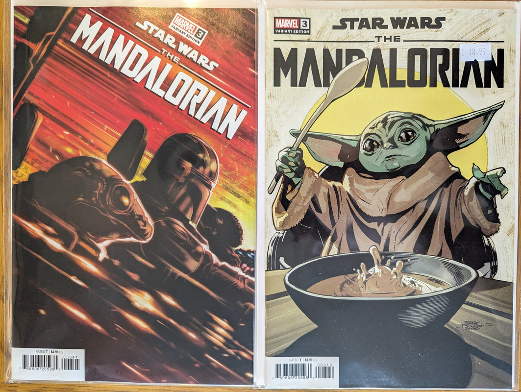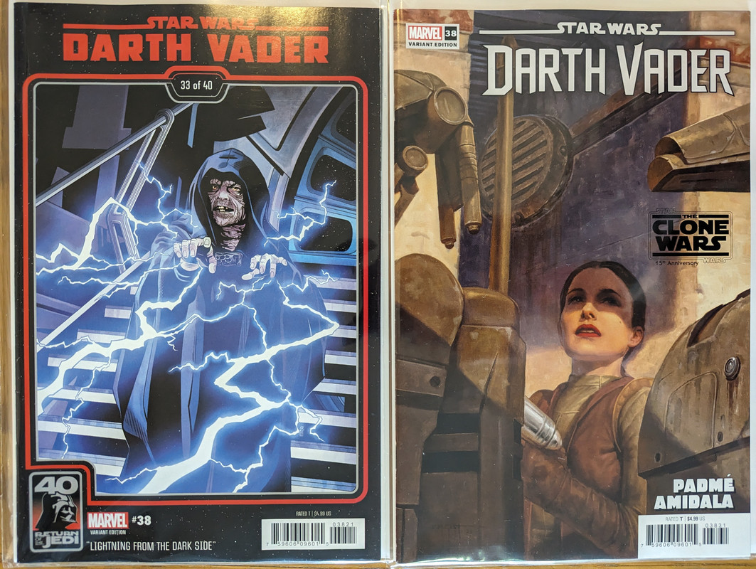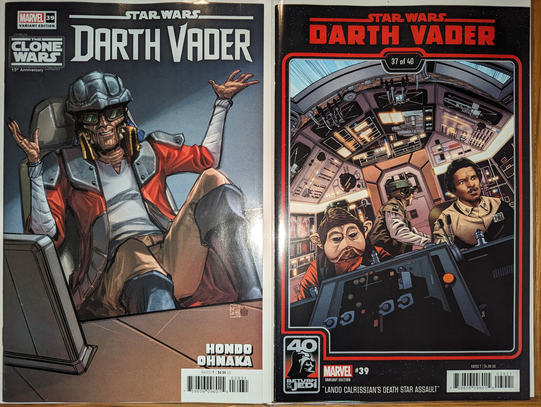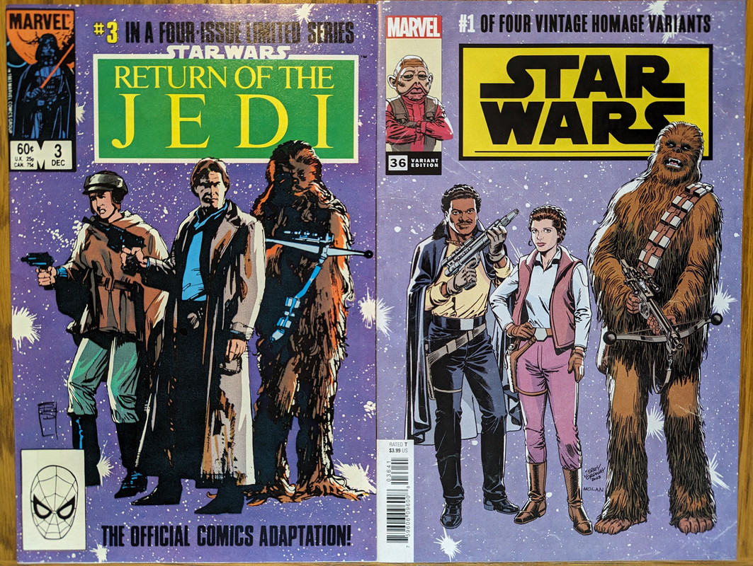 W najblizszych miesiacach bedzie jeszcze wiecej tych virgin wariantow bo jesli nie daja ich jako 1:100 retailer incentive (jak we wszystkich one shotach ROTJ) to sklepy wrzucaja je jako swoje wlasne warianty - Mandalorian, Obi-Wan czy Aphra, ktora bedzie miala 3 virginy sklepowe w dwoch numerach (36 i 37)