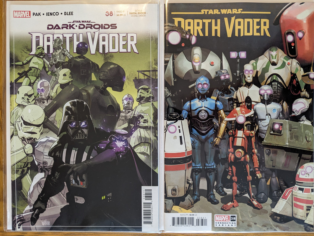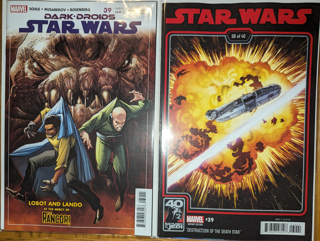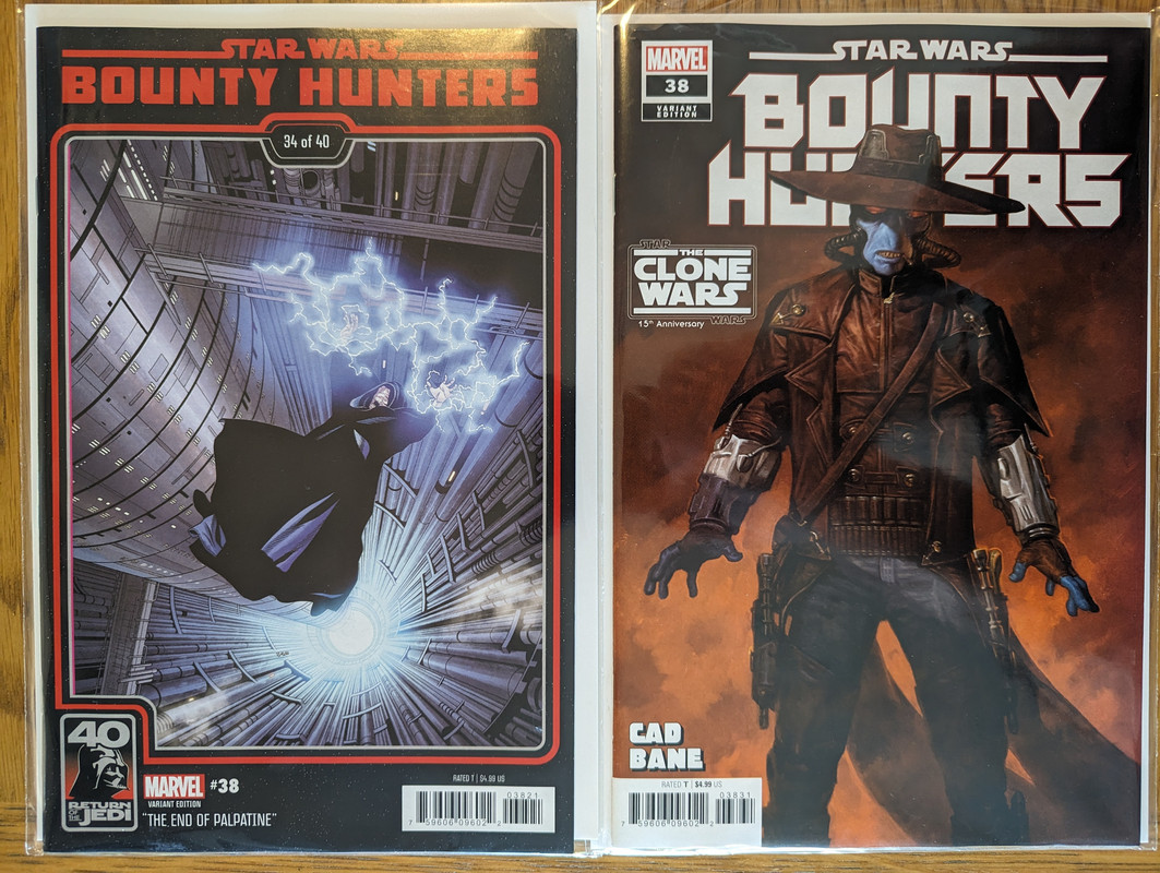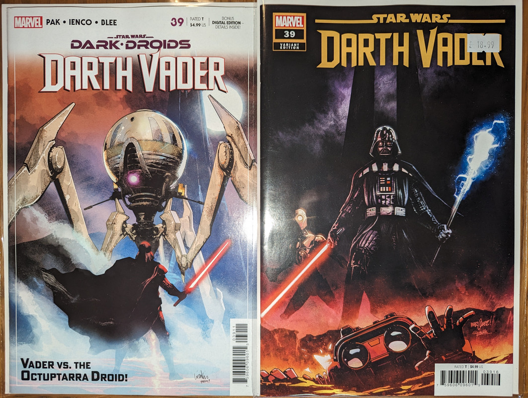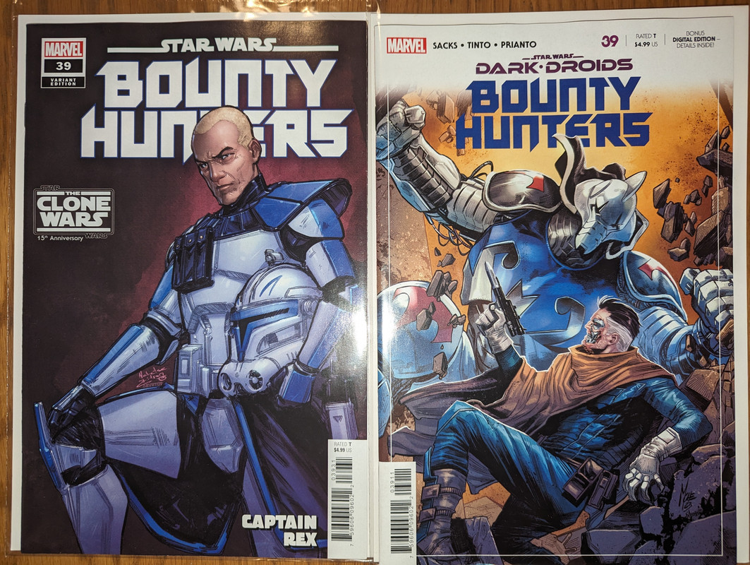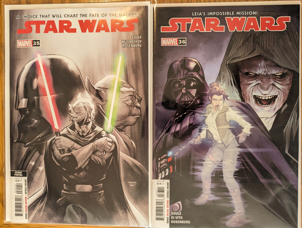 W najblizszych miesiacach bedzie jeszcze wiecej tych virgin wariantow bo jesli nie daja ich jako 1:100 retailer incentive (jak we wszystkich one shotach ROTJ) to sklepy wrzucaja je jako swoje wlasne warianty - Mandalorian, Obi-Wan czy Aphra, ktora bedzie miala 3 virginy sklepowe w dwoch numerach (36 i 37)