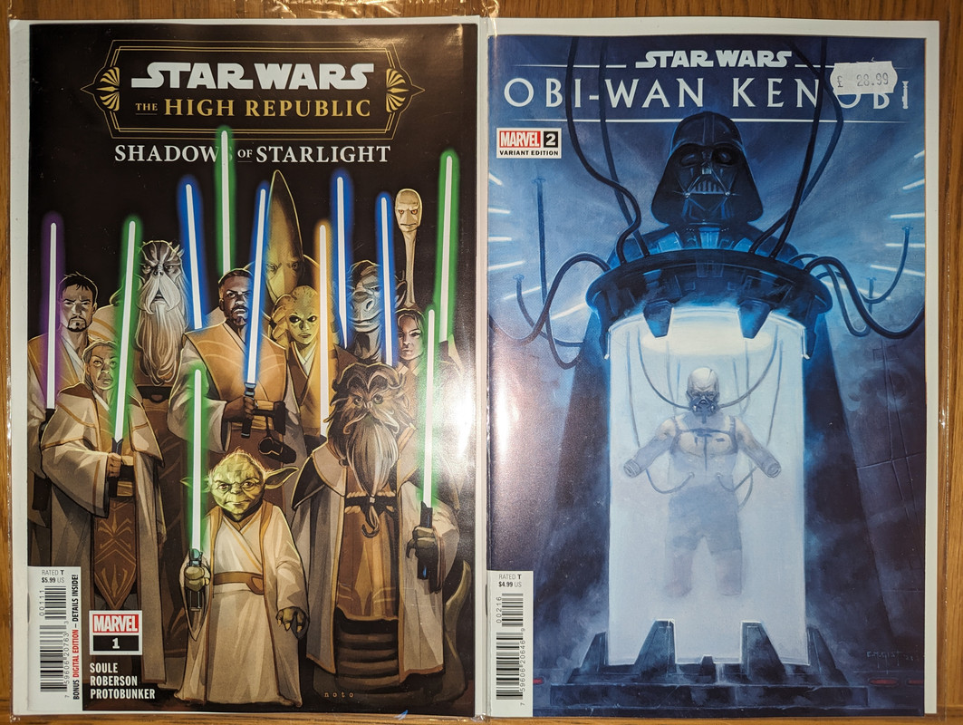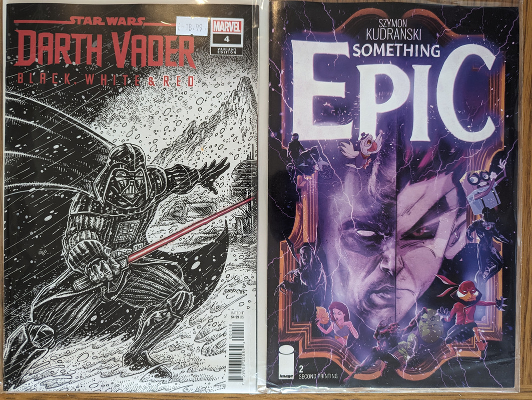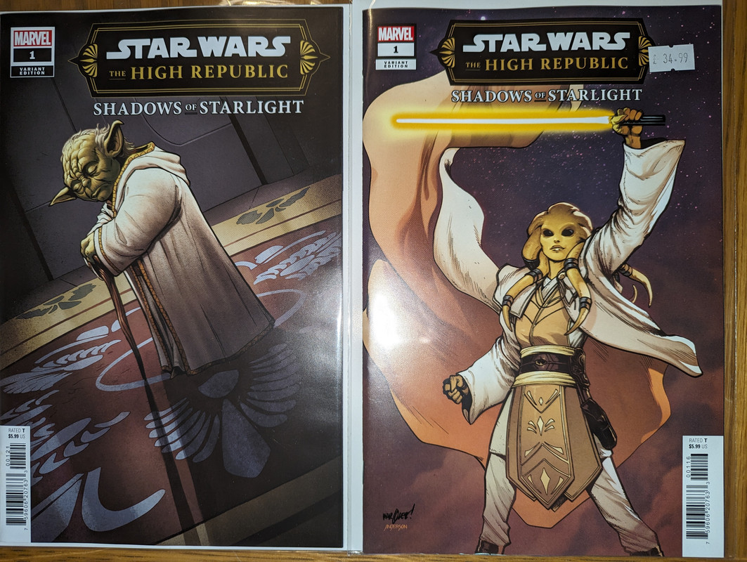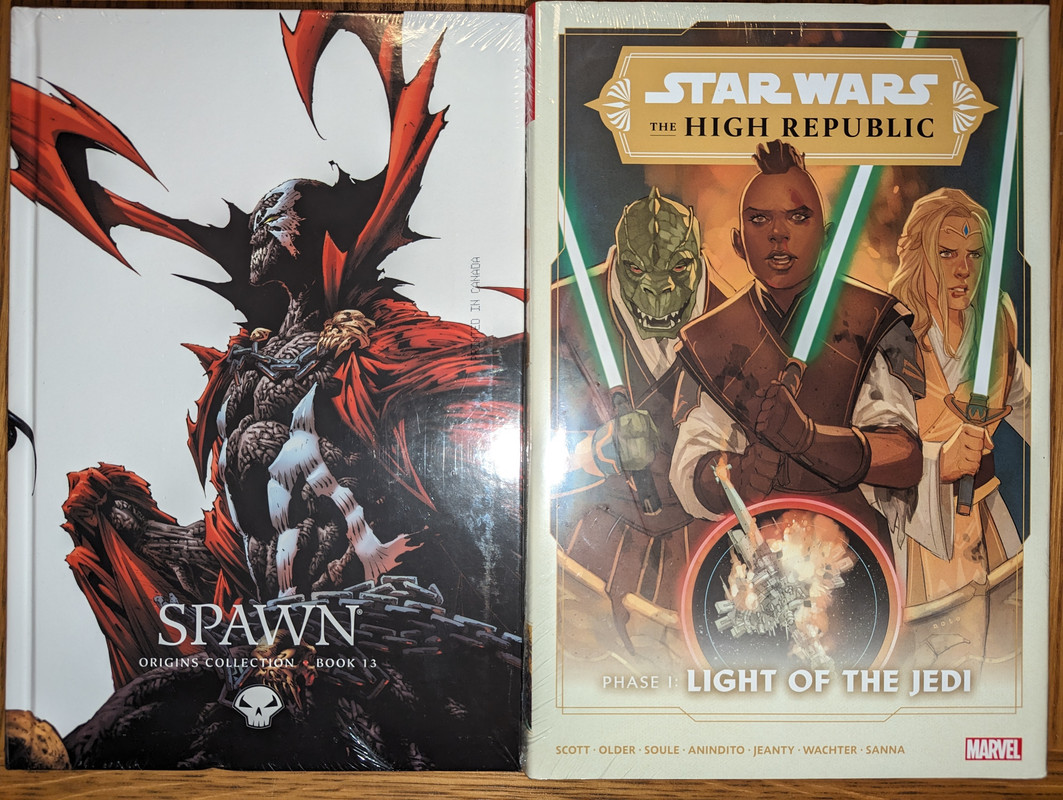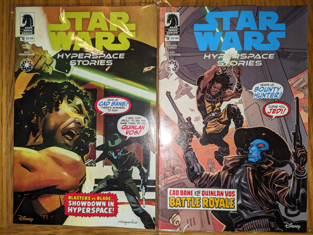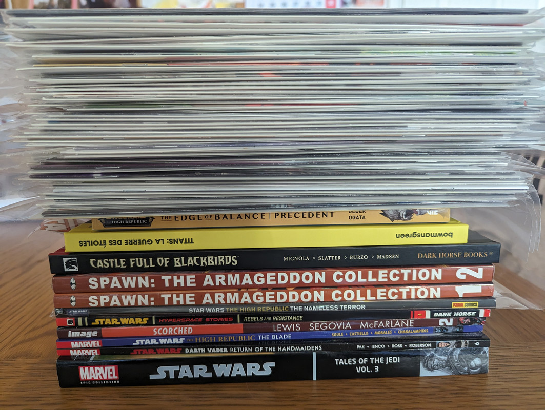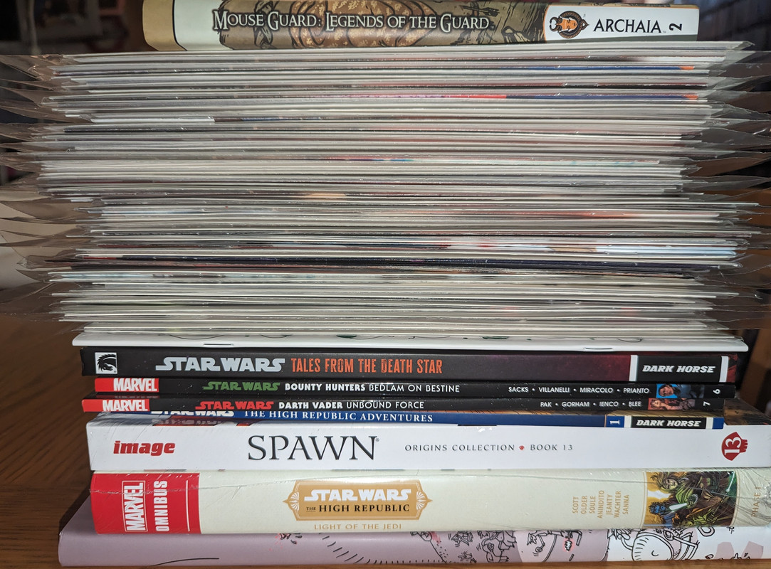 Troszke skomniej niz zwykle, ale za to kilka zaleglych wariantow wpadlo. Virgin Gist i Mayhew do Darth Vader, w zeszlym miesiacu byl 1:100, teraz przybyl 1:250 Batman/Spawn (nastepny jest 1:666, ale nie wiem czy sie skusze z powodu ceny), Star Wars Hyperspace Stories Annual SDCC 2023 special, ostatni brakujacy TPB Gwenpool a reszta to juz raczrej biezace wydawnictwa.