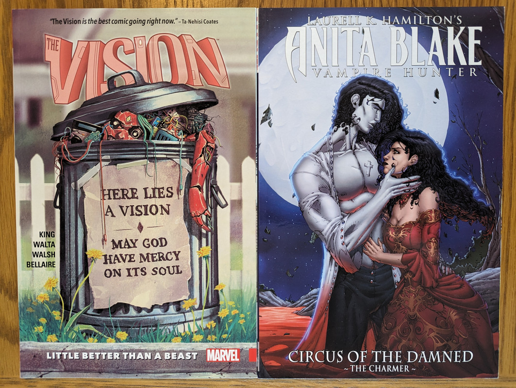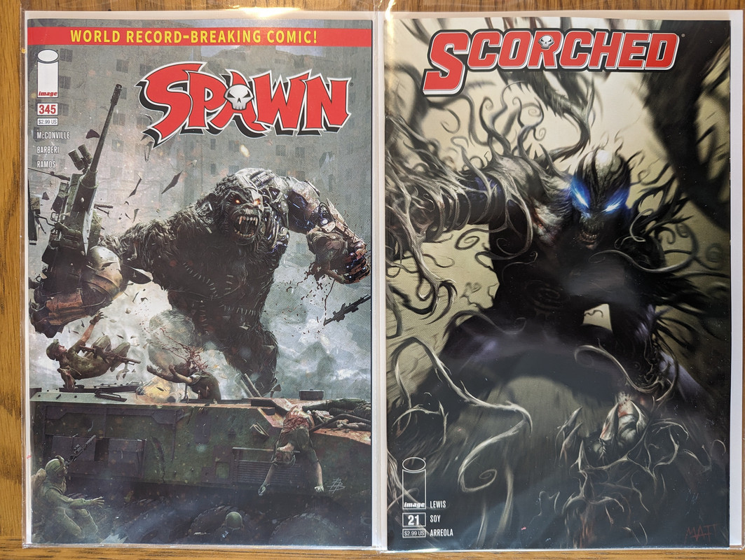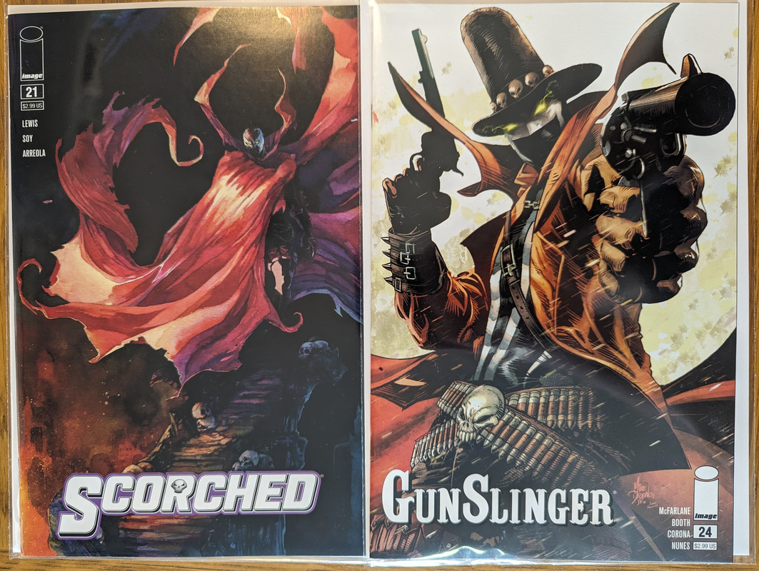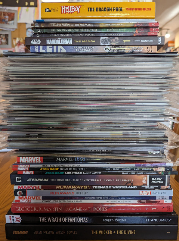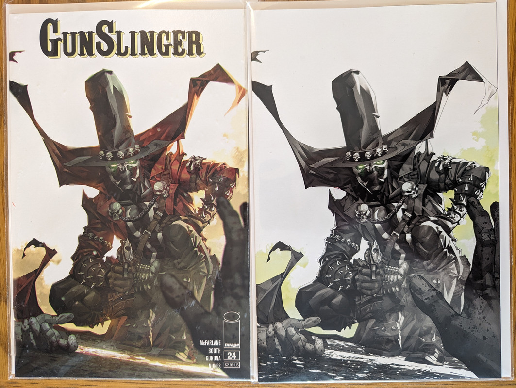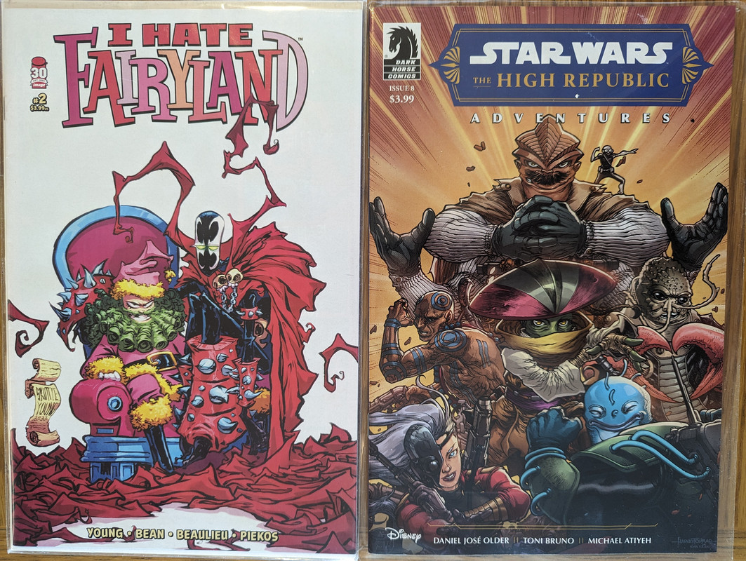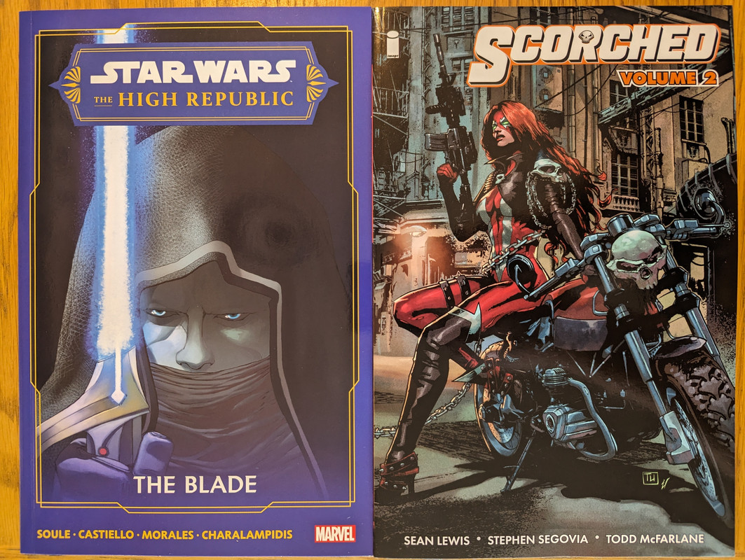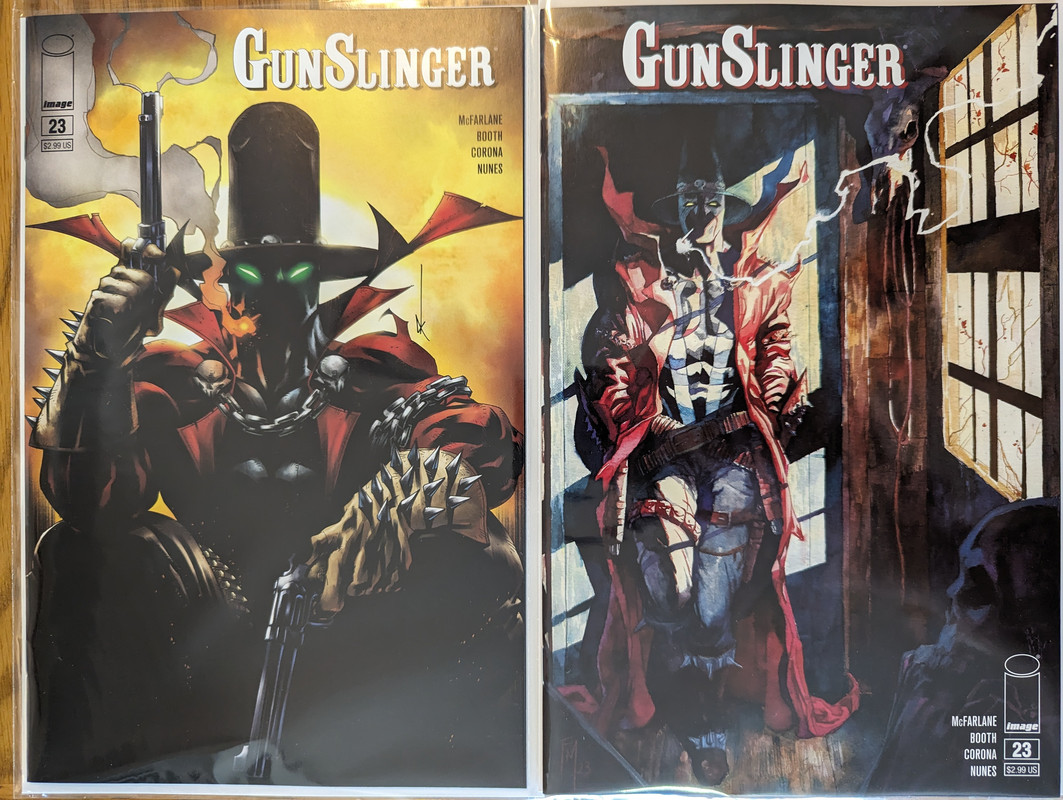 Troszke skomniej niz zwykle, ale za to kilka zaleglych wariantow wpadlo. Virgin Gist i Mayhew do Darth Vader, w zeszlym miesiacu byl 1:100, teraz przybyl 1:250 Batman/Spawn (nastepny jest 1:666, ale nie wiem czy sie skusze z powodu ceny), Star Wars Hyperspace Stories Annual SDCC 2023 special, ostatni brakujacy TPB Gwenpool a reszta to juz raczrej biezace wydawnictwa.