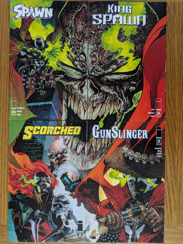 Oraz cztery zeszyty ze wszystkich obecnych serii Spawn, ktore ukladaja sie w jeden wiekszy obrazek (connecting variants)