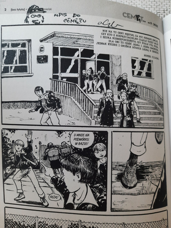 Mimo powszechnej dyskusji o komiksowej twórczości Kima Jung Gi, bardzo ucieszył mnie wrys od niego. Wiadomość o Jego śmierci to był dla mnie cios w bebechy. Szczególnie mocno wpływają na mnie informacje o autorach, których spotkałem, a chwilę później ich już z nami nie ma.