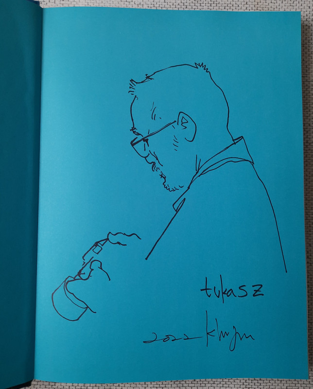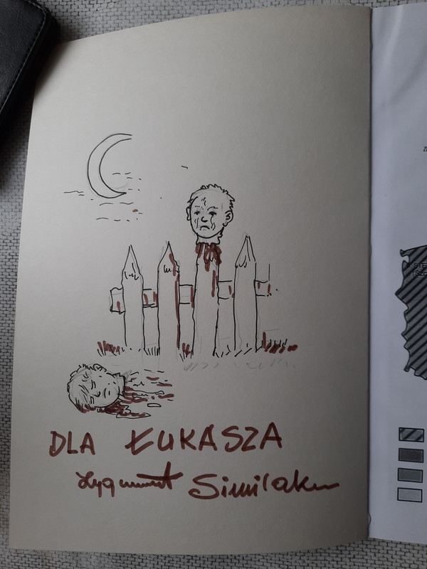 Do czasu wywiadu Lyricstofa z Luko Czakowskim, właśnie o 10:30, najciekawsze było stanie do kasy z Szekakiem i Itachim (Pozdro Chłopaki!) Po wywiadzie udałem się do strefy, po wrys od Pana Jacka właśnie. Mimo że przedłużył swój pobyt na niej, to rozdał może 8 takich. Zorganizowaną grupą pięciu osób przekonaliśmy autora Planety robotów do rozdanie jeszcze kilku na „zapleczu”. A to owoc mojej cierpliwości: