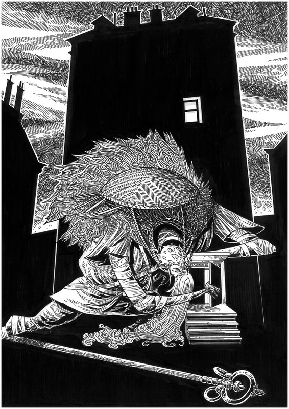 Andrzej Łaski - Jakub Wędrowycz - ilustracja do opowiadania "Rurka" z tomu "Konan destylator".