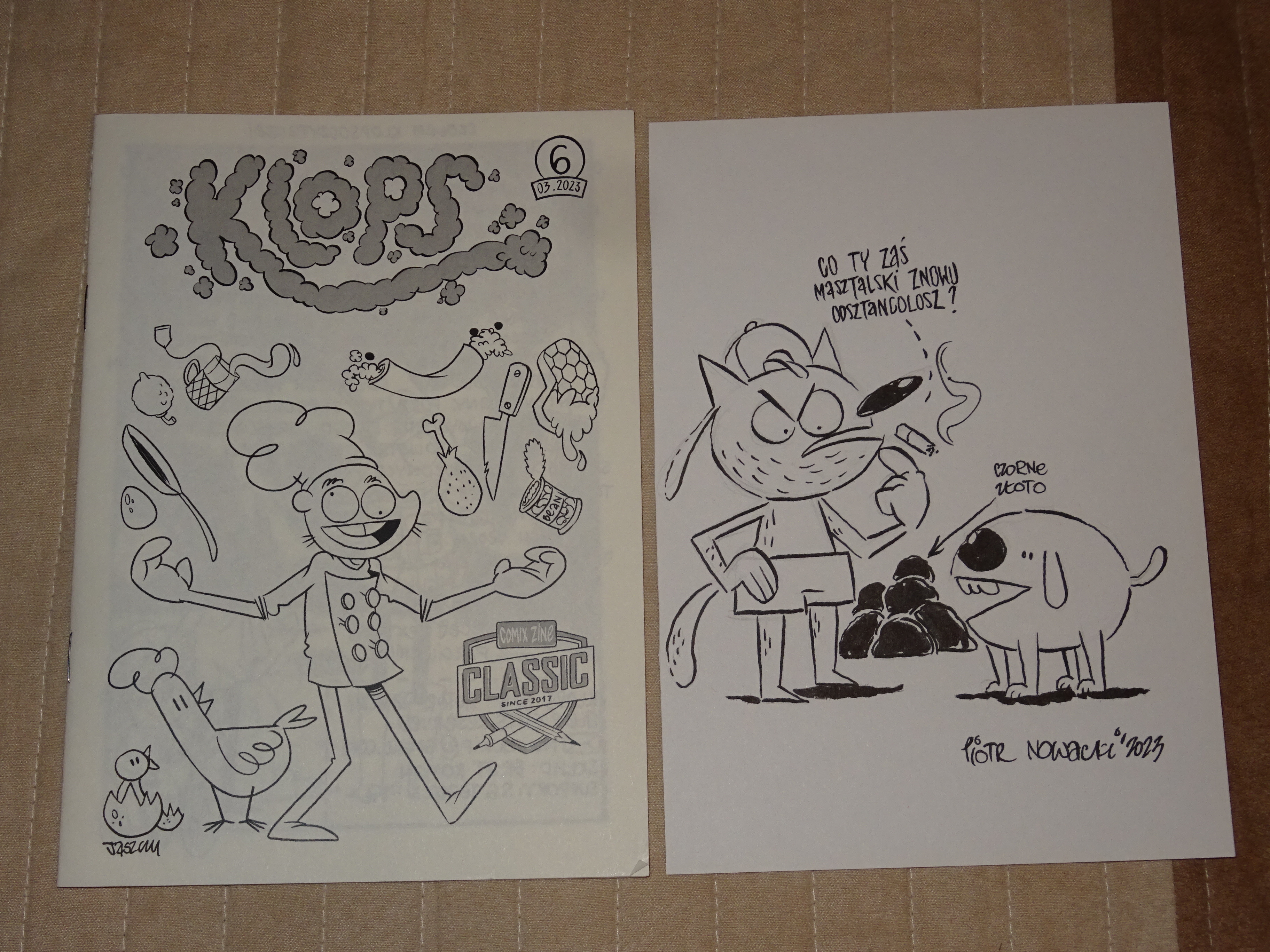 Na początek zakupiony przez @Lyricstofa na festiwalu w Krakowie i odebrany w Wa-wie nowy Klops wraz z rysunkiem (+ jajko na okładce).