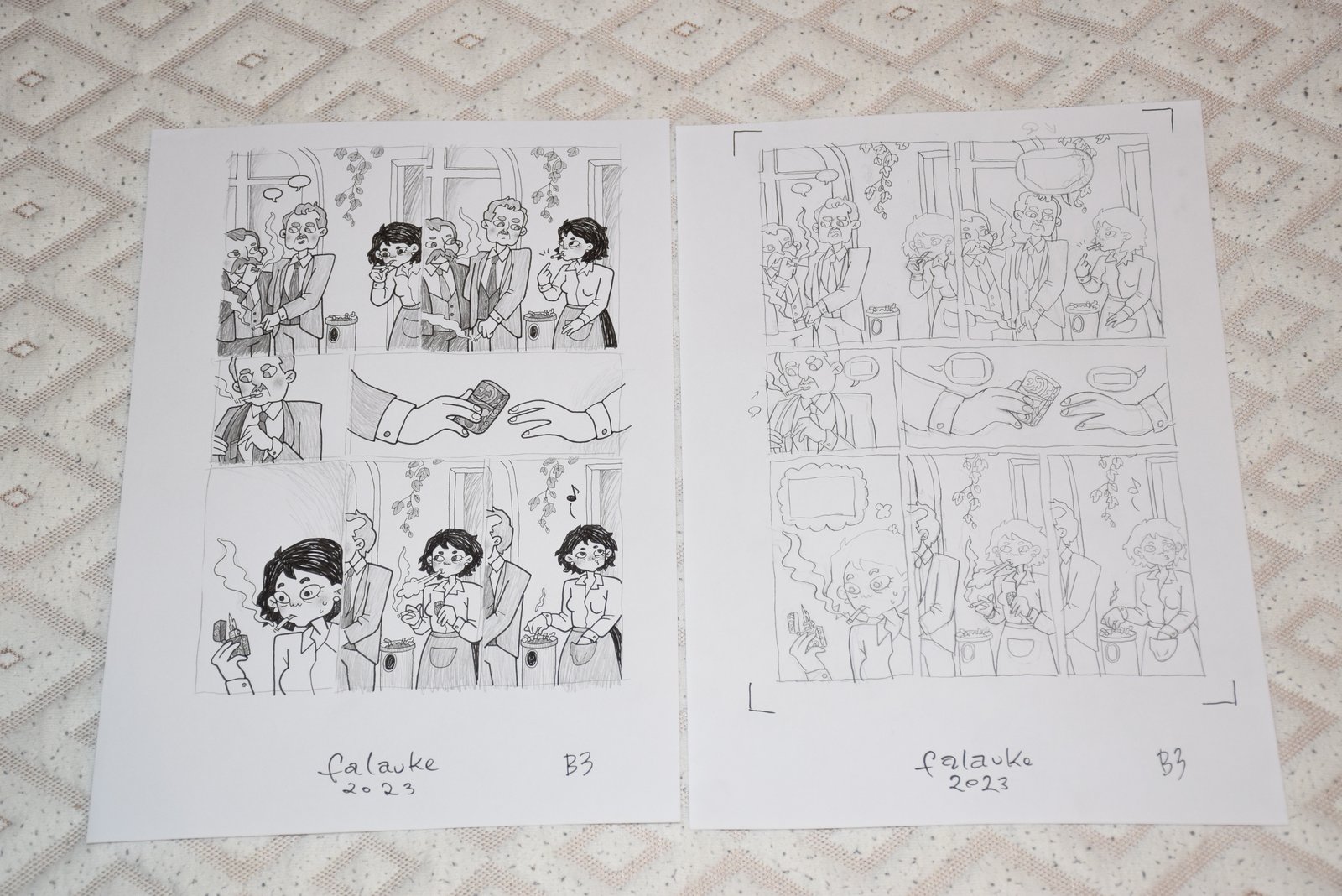 - Falauke plansza z Czy wszystko smakuje? + szkic - spodobała mi się ta plansza, bo opowiada zamkniętą mini-historię: