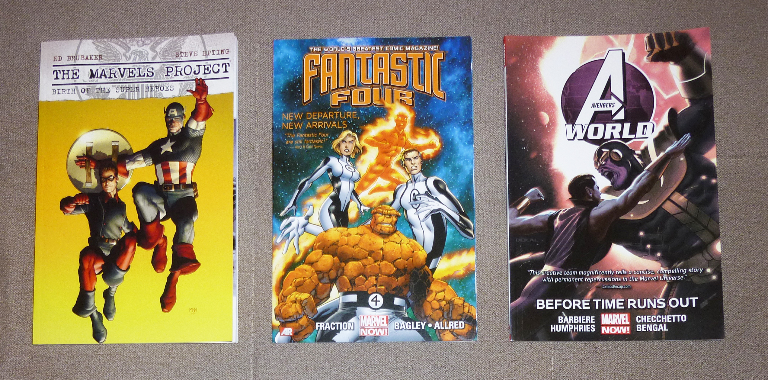 Figurki robią za obciążenie, bo okładka Avengers World mocno odstaje od komiksu (tak samo zresztą jest z The Marvels Project). Dziś już, panie, nie robią takich okładek jak kiedyś. :P