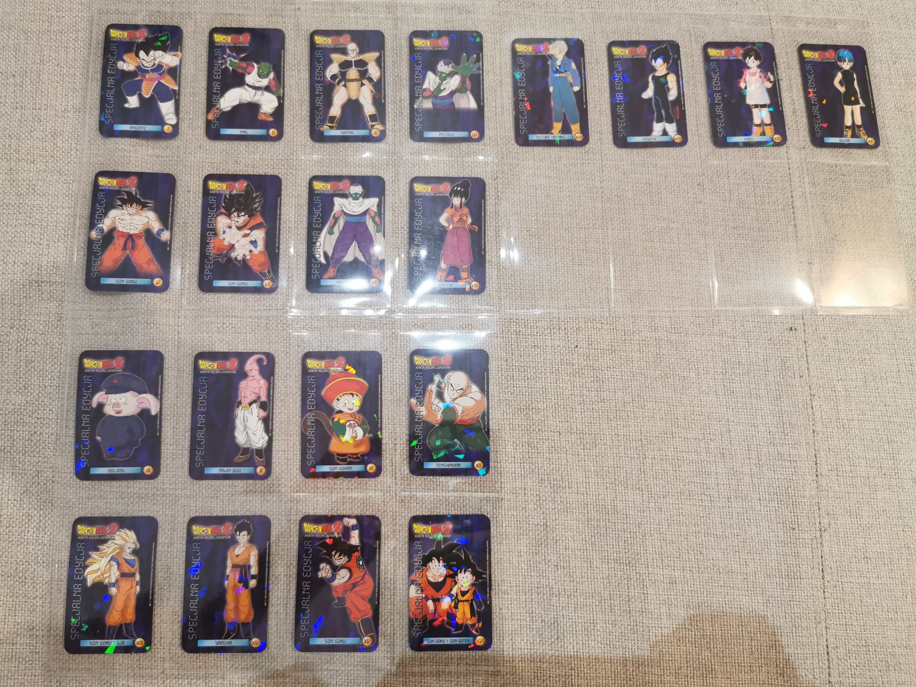 Seria 2, linia 3 - DBZ edycja specjalna - 20 kart (fajna seria kart holograficznych, szkoda że akurat tu trafiły się dwa spore błędy - na numerze 1 Vegeta podpisany jako Raditz, na 14 Gohan jako Yamcha)
