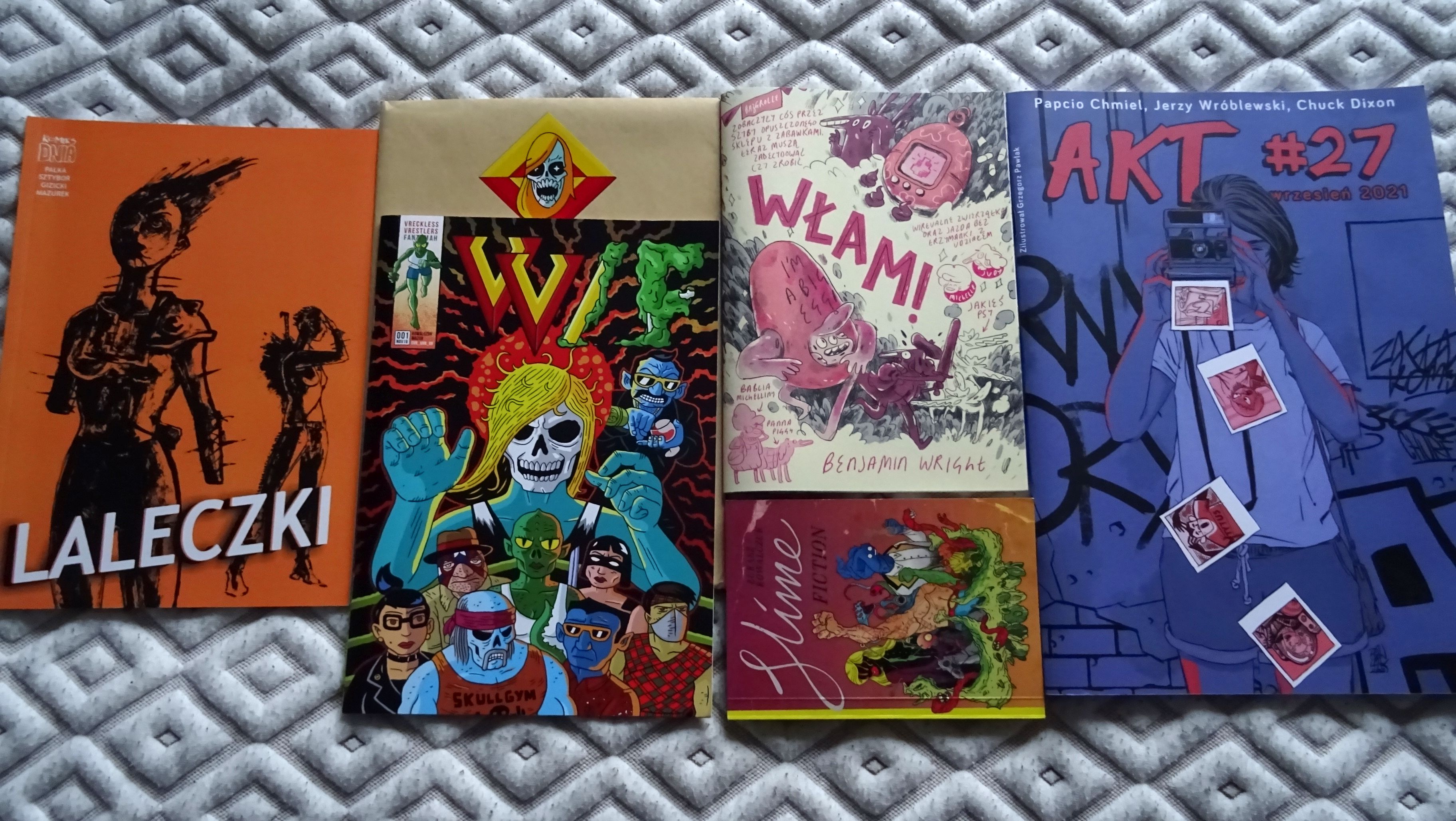 Szukając jednej pozycji, zrobiłem trochę porządków i stwierdziłem, że cyknę parę fotek zakupów takich bardziej niszowych komiksów zakupionych w 2021 (niektóre to zakupowe zaległości wydane wcześniej) + magazyny Zeszyty komiksowe, Akt + książka Kolory PRL. Możliwe, że jakieś pojedyncze rzeczy już kiedyś wrzucałem przy okazji innych zakupów, ale już nie chciało mi się sprawdzać.