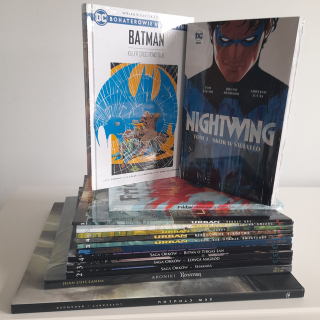 Czas na kolejną grubą wrzutę, czyli sierpniowe zakupy. Wpadły 62 komiksy (udało się przebić rekordowy lipiec). Króluje Egmont za sprawą nadrabiania różnych serii (Invincible, Blueberry, B.B.P.O. Piekło na Ziemi czy Kaczogród). Oprócz tego kilka smakowitych nowości jak Zmarszczki, Shamisen, Ciemność, Bractwo kraba czy komiksy od LIT.