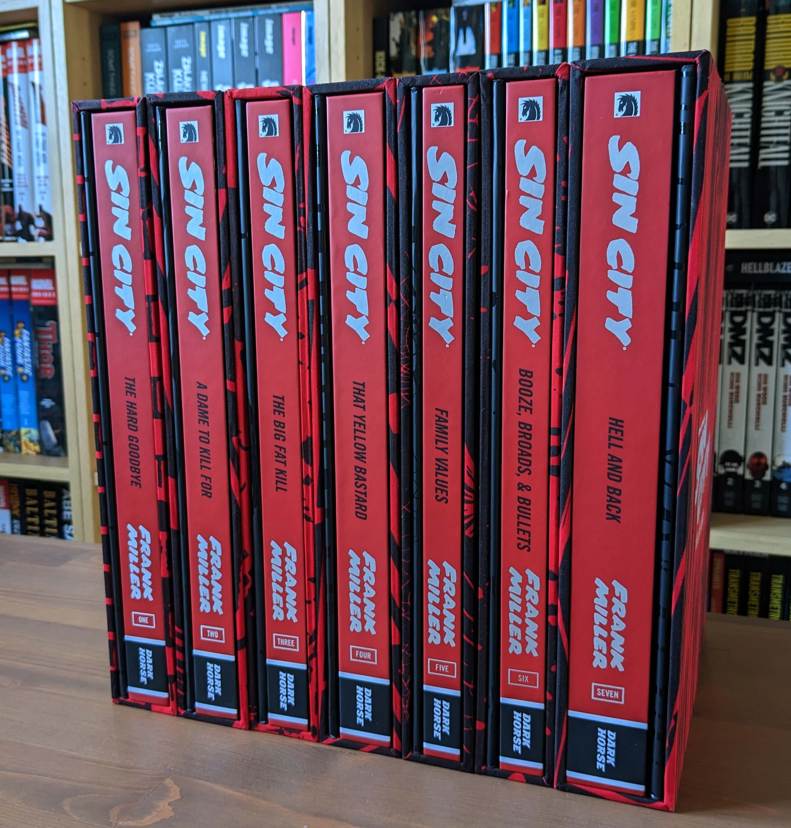Na ostatnich dwóch wyprzedazach w Atomie/Azylu kupiłem komplet Sin City, wersja Deluxe, a tak naprawde to mix Library Edition z DH i Absolute z DC.