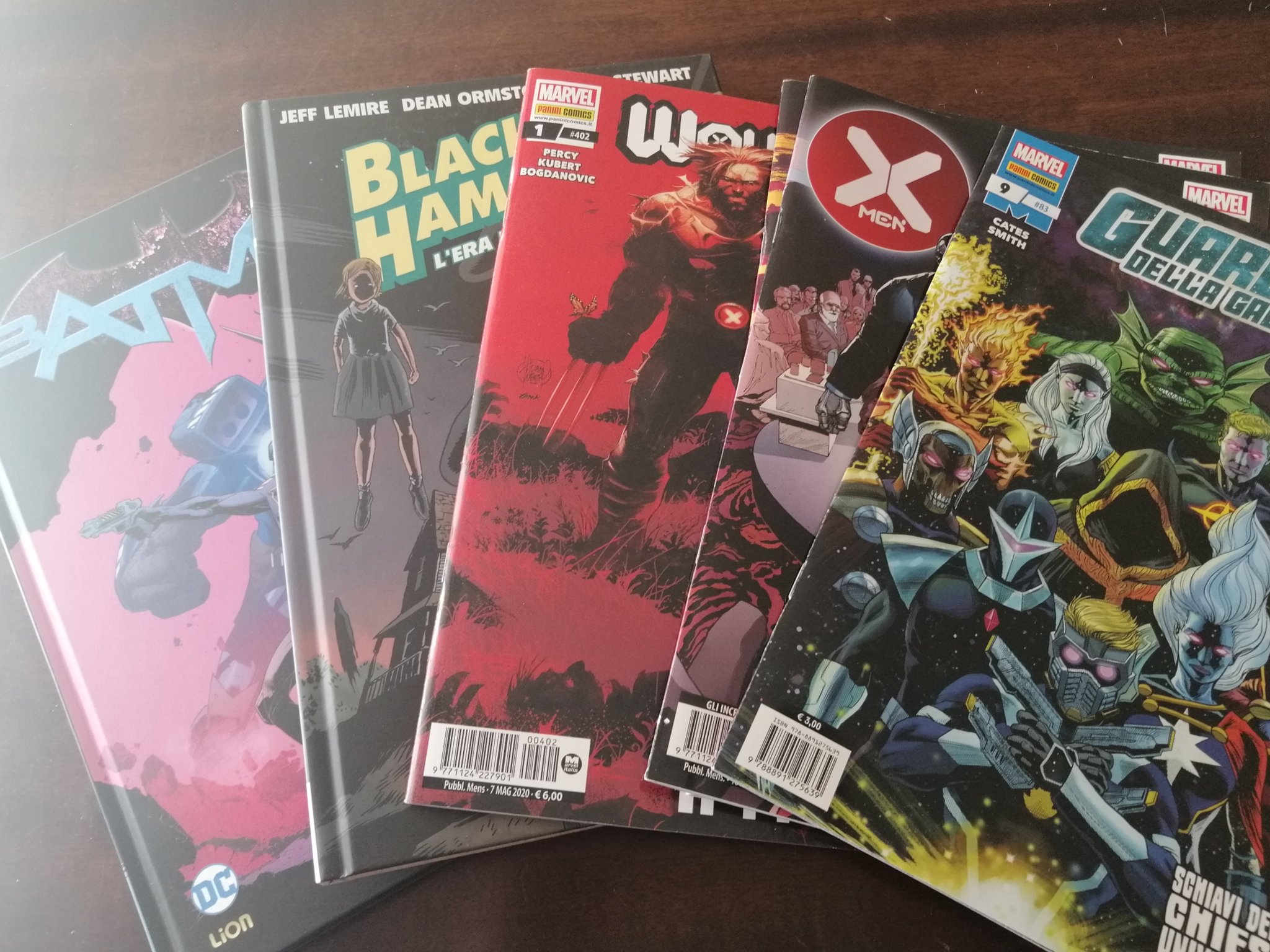 Nie spodziewałbym się, że we Włoszech mają tyle serii w zeszytach (zdjęcie oczywiście nie moje). Strażnicy Galaktyki w nawet znośnej cenie (3 euro), Wolverine za 6 euro to chyba jakiś grubszy albo podwójny numer: