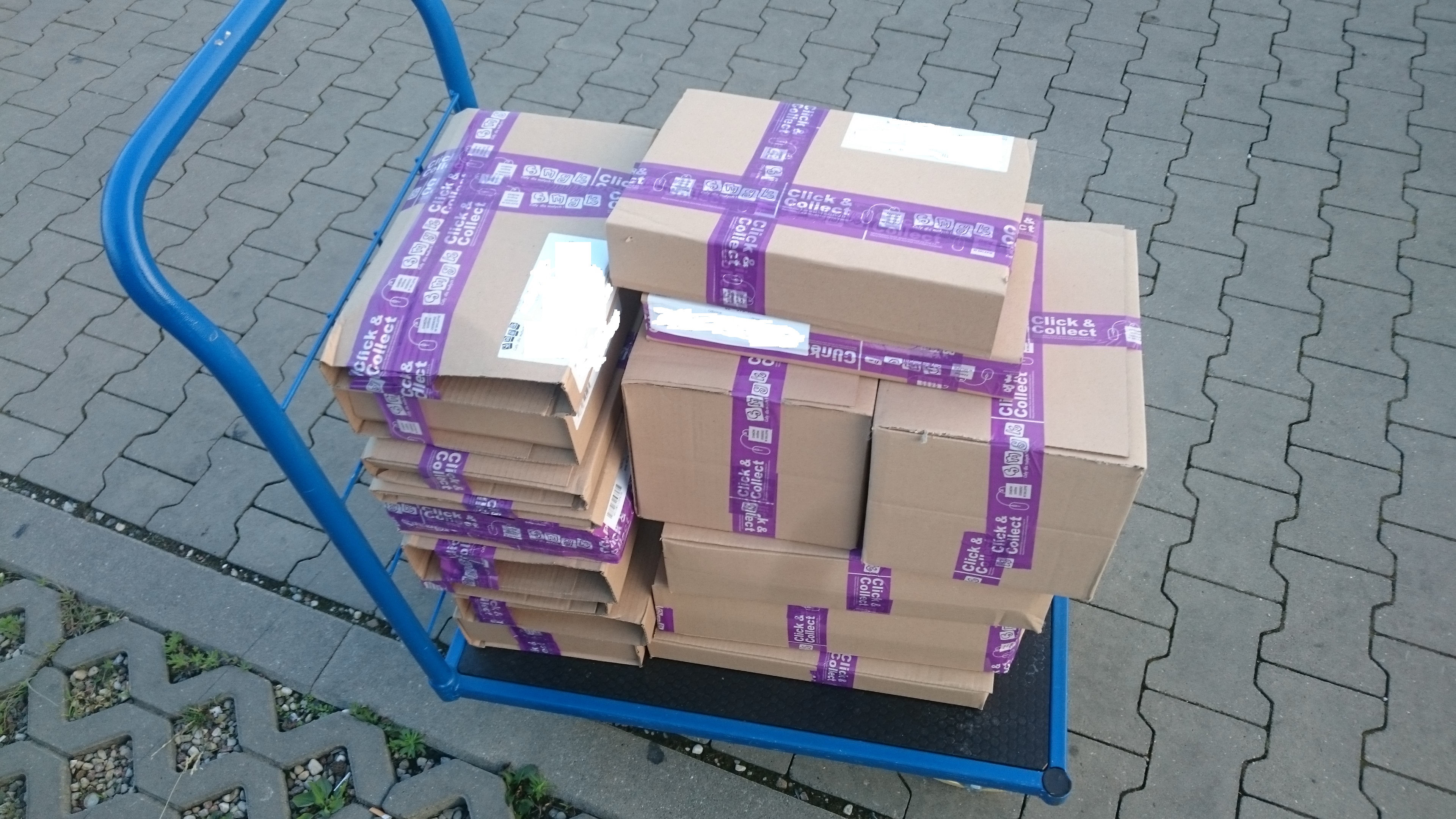 Odebrane zamówienia ze Smyka. Miła Pani sprzedawczyni pożyczyła wózek, więc nie musiałem 2 czy 3 razy latać do samochodu. Podobało mi się też pytanie/stwierdzenie przy odbiorze: "To pewnie na nagrody" ;)