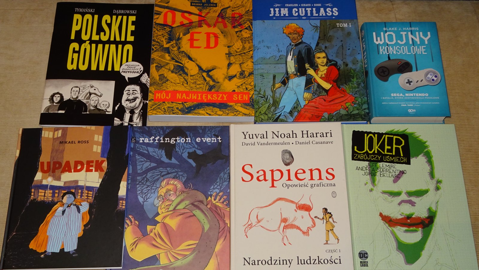 Z przeczytanych Joker, Upadek i Kaczory bardzo polecam. Polskie gówno jak ktoś oglądał film, to można przeczytać, trochę zmian, wziąłem z ciekawości i dlatego, że lubię kreskę Dąbrowskiego. Raffington Event - oczekiwania były większe.