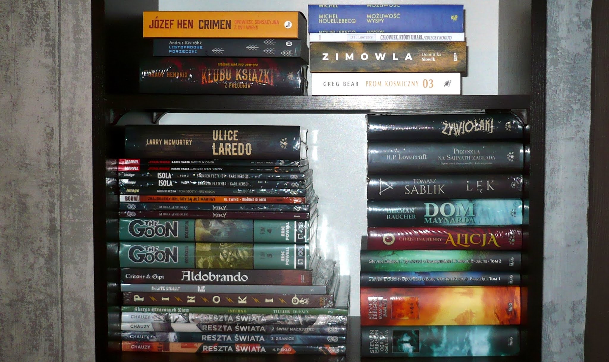Dawno tu nie wrzucałem, bo ostatnio komiksów przybywało skromnie. W listopadzie się nieco rozpędziłem - przybyło trzydzieści pięć: siedemnaście książek (dwa razy powieść historyczna, reszta różne odmiany fantastyki, wyjątkowo sporo horroru) i osiemnaście komiksów. Ale okres przedświąteczny, niedobory papieru i obłożenie drukarń dają znać o sobie, bo miałem jeszcze zamówienia w Magu (trzy książki, jeden komiks), Gildii (siedem komiksów) i Empiku (jeden komiks) – opłacone, nie dotarły w listopadzie...