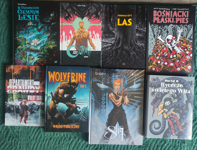 5966 gram , 1352 strony. Póki co skromnie, skusiłem się na ofertę promocyjną Kultury Gniewu , komiksy od Studia Lain biorę już z automatu także gratuluję sprytnego marketingu plus ostatni tom Outcast i Muchowego Wolverine'a ,tom Rucki aktualnie czytam i jest bardzo dobrym, mięsistym komiksem akcji bez  strzelania laserami o brudnej stronie życia i złych ludziach także liczę na udaną kontynuację . No i Departament Prawdy który z każdym kolejnym zeszytem zaskakuje coraz bardziej , lubię takie rozkminy  :) .