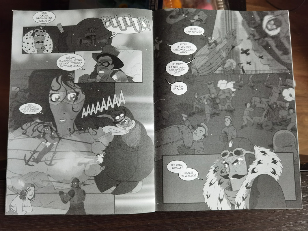 Drugi zeszyt Rajtuzów wygląda lepiej - dalej są to szarości, ale ten efekt rozmycia drugiego planu jest dużo mniejszy. W jedynce był za mocny.