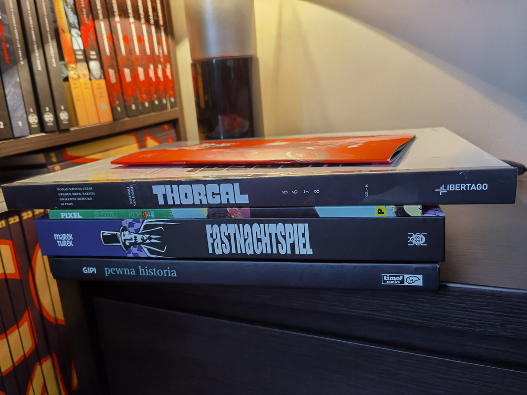 Ja najbardziej się cieszę że zdobyłem w końcu salę prób, cudo komiks z 2008r. Był u mnie w schowku na gildi wciąż niedostepny od 2017 kiedy to timof wydał ziemie swoich synów i rok pozniej pięknego S. Niespodziewany mail z gildi że mają jeden egzemplarz, szybkie składanie zamówienia i nerwy czy dojdzie do mnie.. Gipi jest świetny, miażdży, no uwielbiam jego komiksy. dwa miesiące temu wydano czwarty jego komiks w Polsce, pewną historie, polecam szczerze..  :)