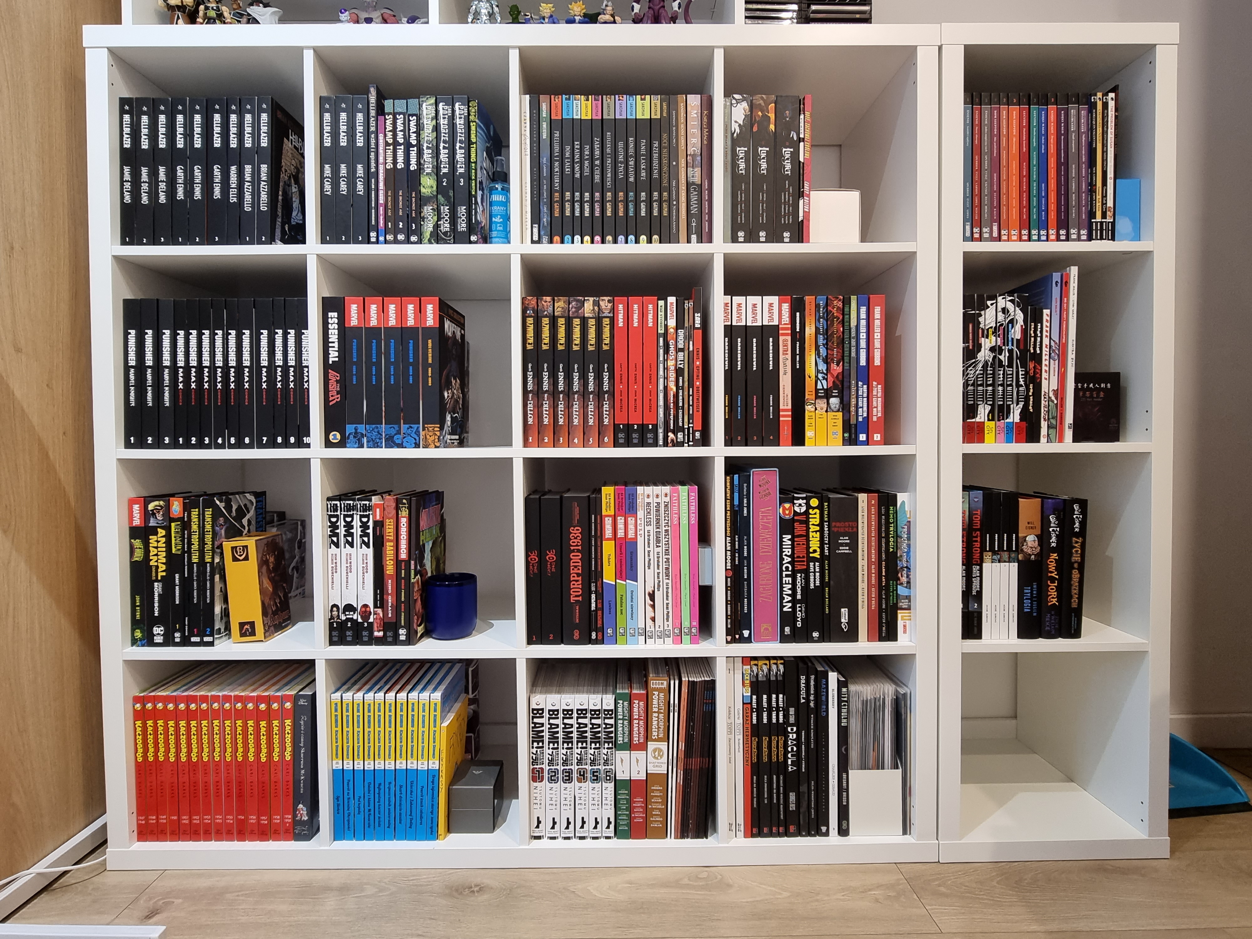Komiksy układam tematycznie i w miarę możliwości chronologicznie (nie zawsze, bo czasami taki układ mi nie pasuje, np. wielkoformatowe komiksy Moore'a trzymam razem, a nie pomiędzy innymi tomami - choć w sumie rzeczy z 2000AD pasują jako początek twórczości, ale "Zagubione dziewczęta" już nie bardzo).