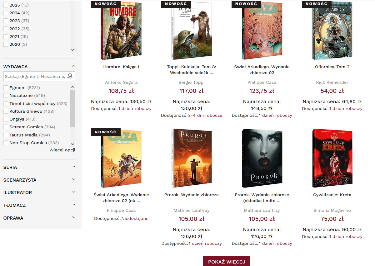 Tak, jak się wczytać to jest napisane pod pozycją 'Niedostępne' i brakuje ceny, ale wszystko tak się zlewa kolorystycznie, że jest to nieintuicyjne i nie tak przejrzyste jak duży bordowy przycisk 'Dodaj do koszyka' dostępny pod daną pozycją lub nie.