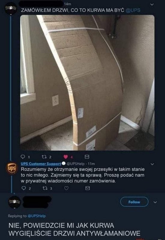 Na poprawę humoru przykład wykonania usługi przez cenionego kuriera UPS.