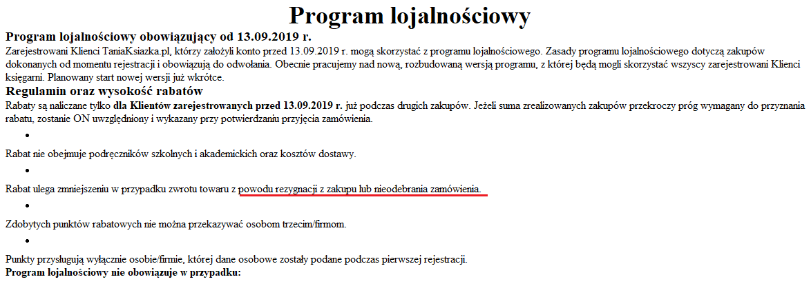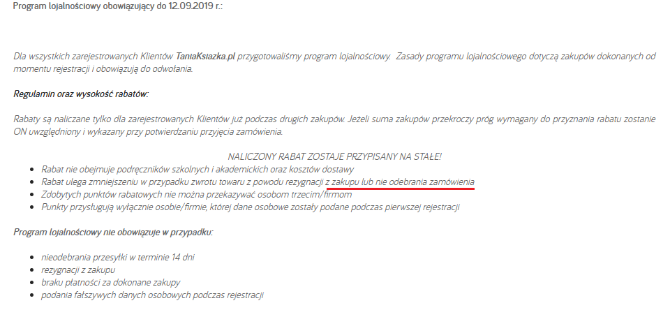 Ale ten program lojalnościowy obowiązując do dnia 12.02.2019 został zastąpiony nowym programem lojalnościowym obowiązującym od 13.09.2019